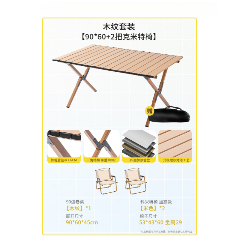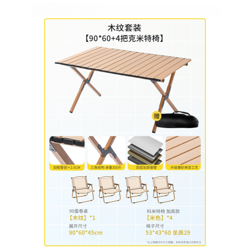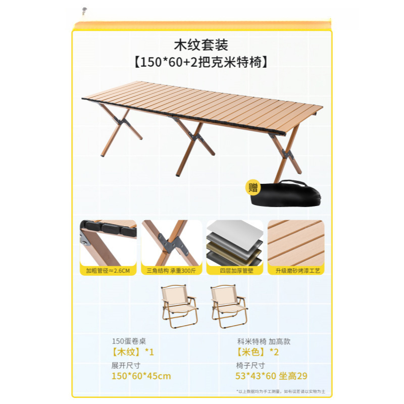 야외 접이식 테이블 탄소강 합금 계란 롤 테이블 휴대용 캠핑 테이블과 의자 피크닉 스톨 장비 및 용품 전체 세트스토어 가기