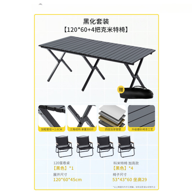 야외 접이식 테이블 탄소강 합금 계란 롤 테이블 휴대용 캠핑 테이블과 의자 피크닉 스톨 장비 및 용품 전체 세트