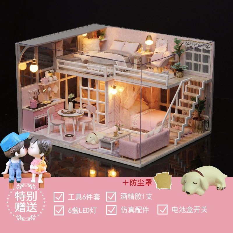 Diy 캐빈 수제 미니 작은 집 건물 빌라 모델 조립 여성을위한 크리 에이 티브 장난감 생일 선물
