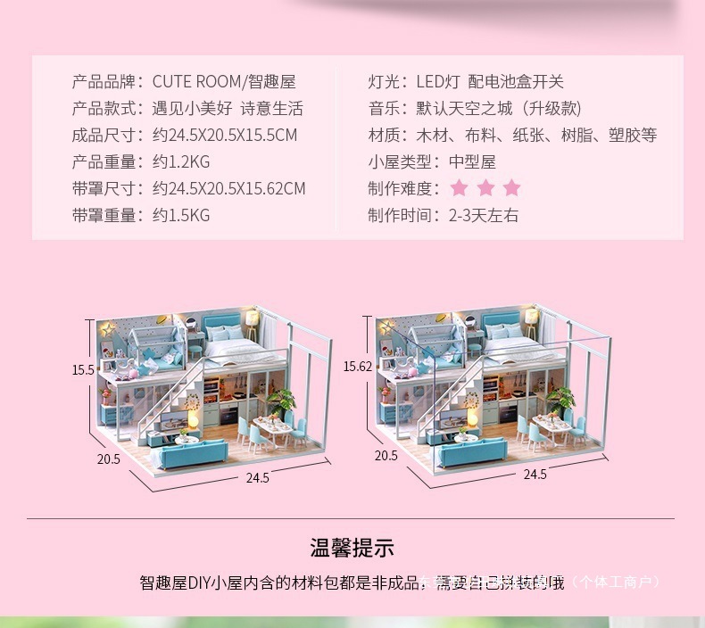 Diy 캐빈 수제 미니 작은 집 건물 빌라 모델 조립 여성을위한 크리 에이 티브 장난감 생일 선물스토어 가기
