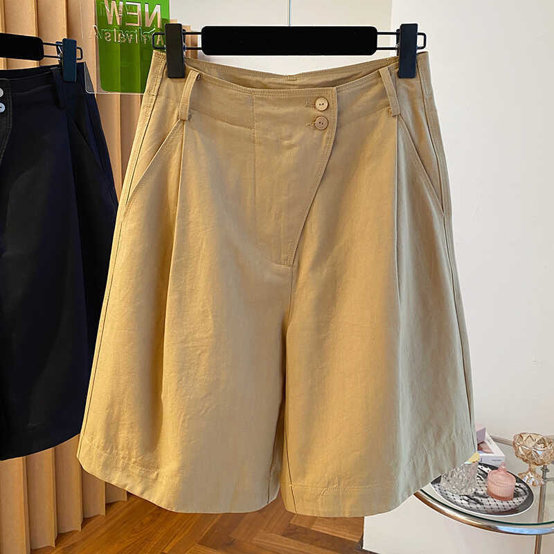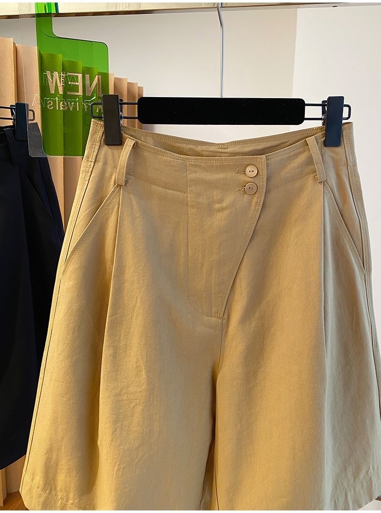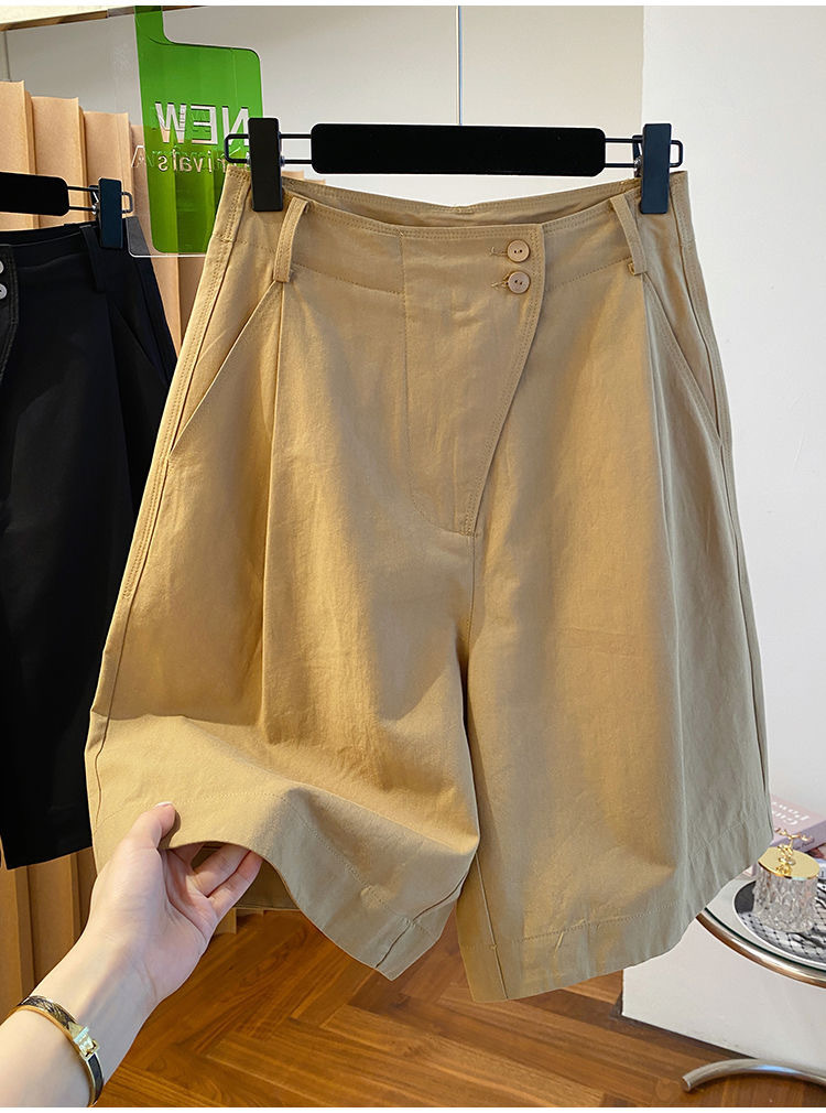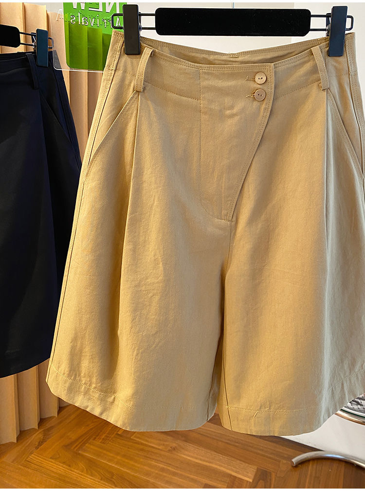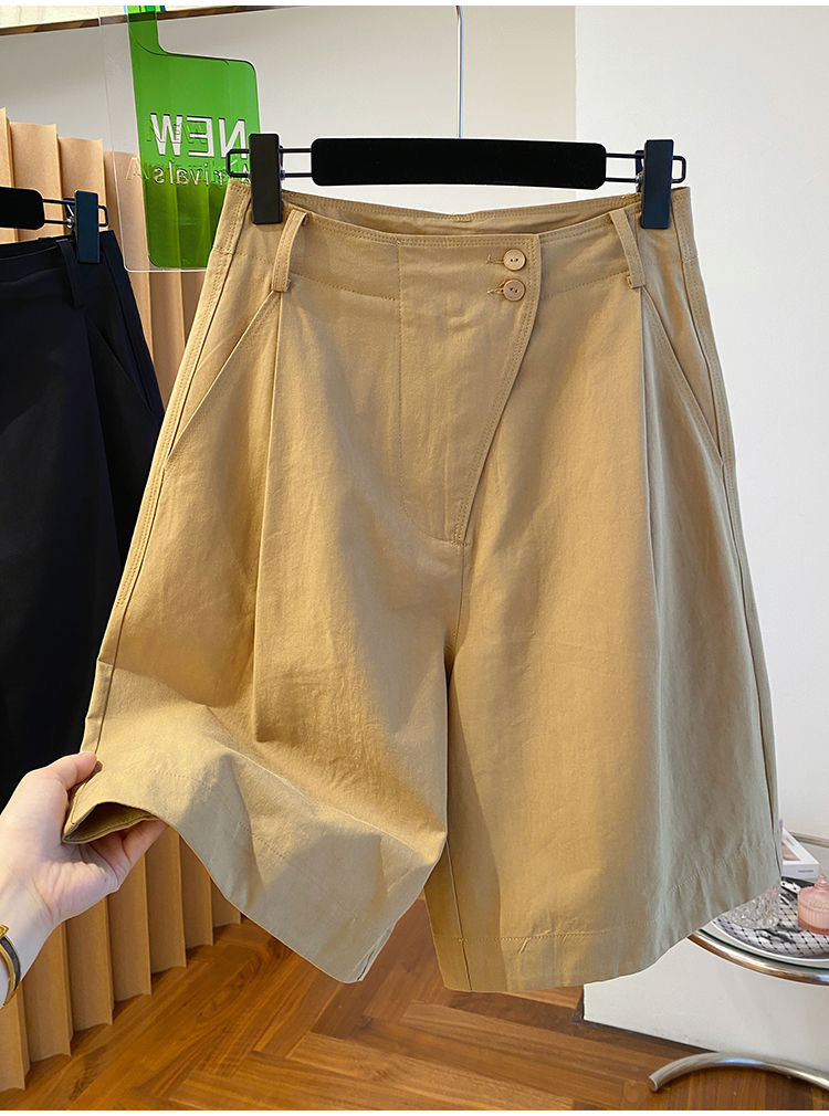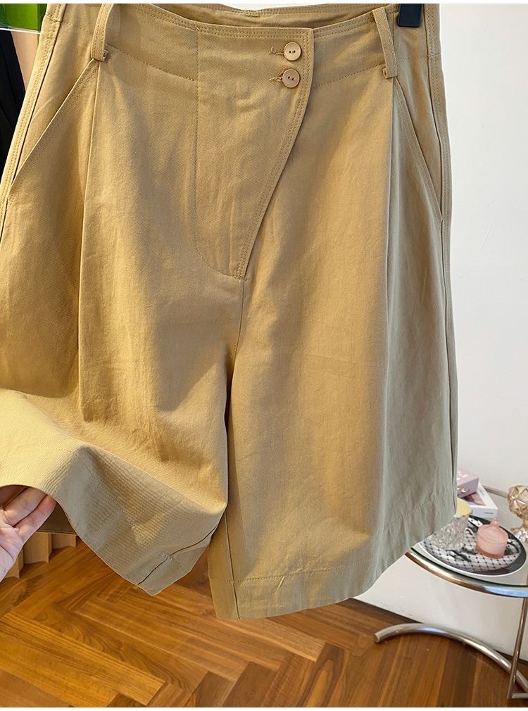 고급 카키 툴링 바지 반바지 여성 2025 새로운 하이 웨이스트 A-캐릭터 스트레이트 바지 얇은 바지