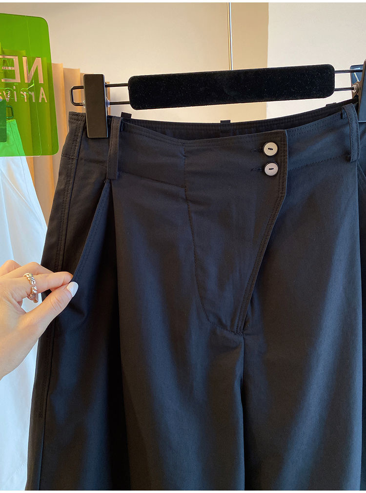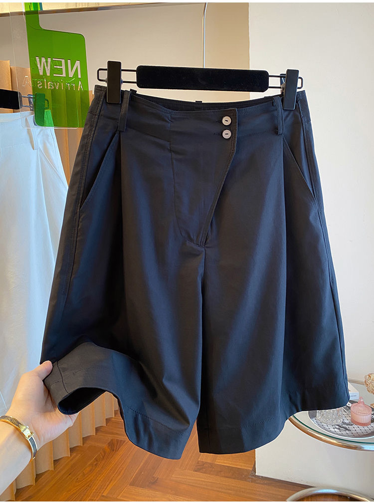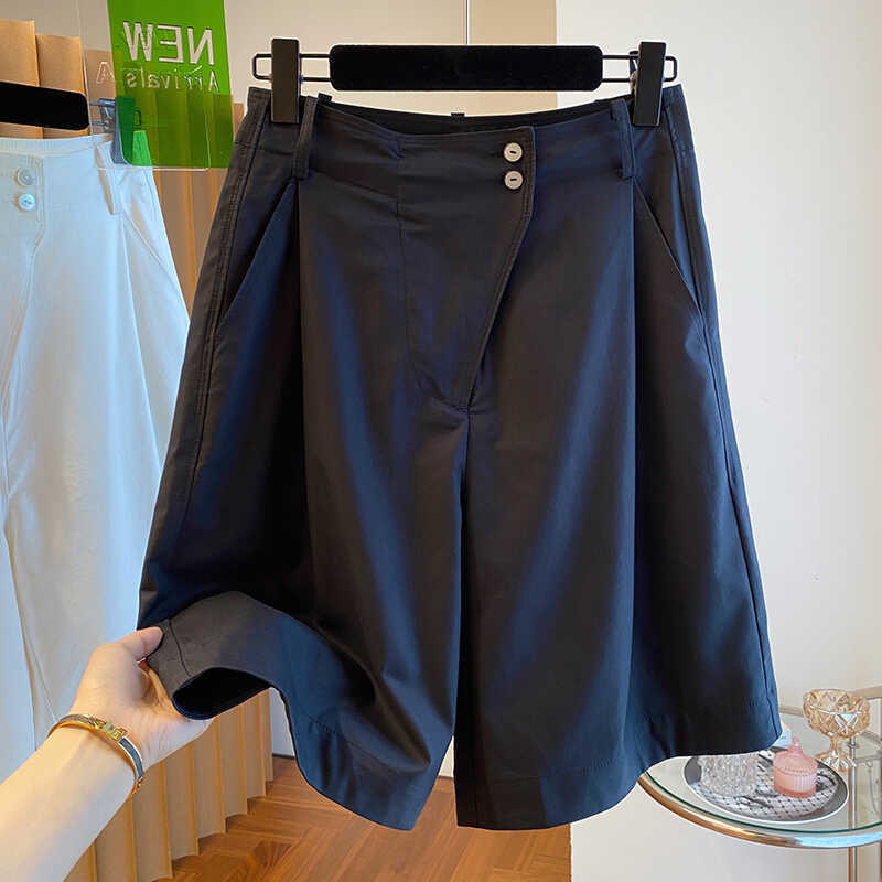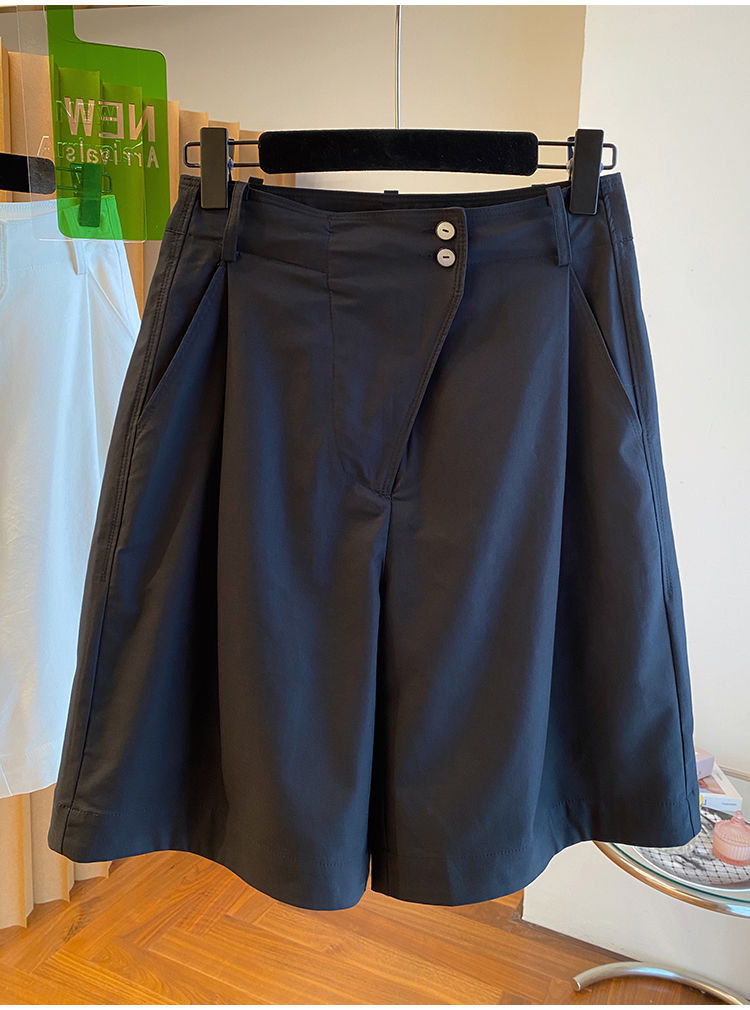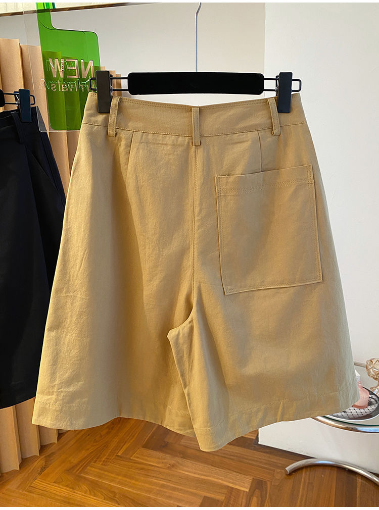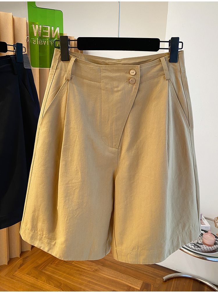 고급 카키 툴링 바지 반바지 여성 2025 새로운 하이 웨이스트 A-캐릭터 스트레이트 바지 얇은 바지