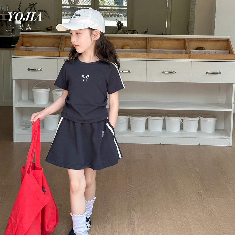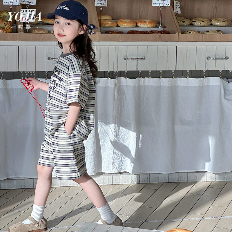 YOJIA 여자 스포츠 세트 컬렉션 2025 새로운 유행 여자 반팔 반바지 어린이 투피스 세트