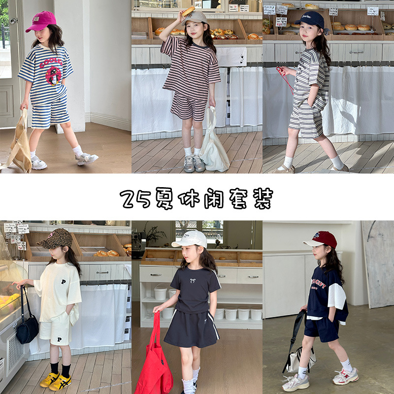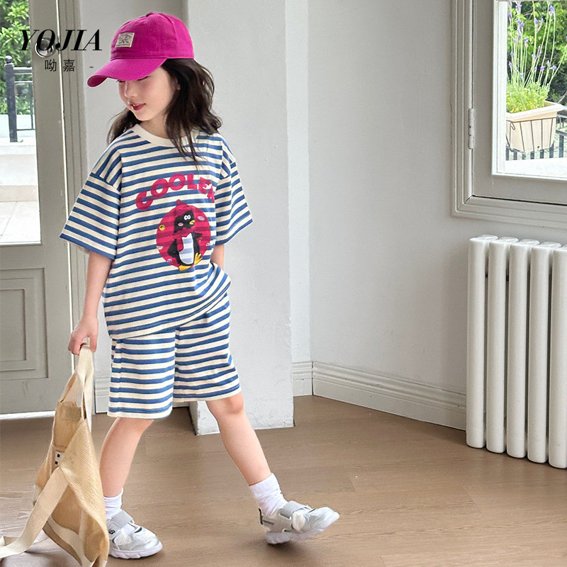 YOJIA 여자 스포츠 세트 컬렉션 2025 새로운 유행 여자 반팔 반바지 어린이 투피스 세트스토어 가기