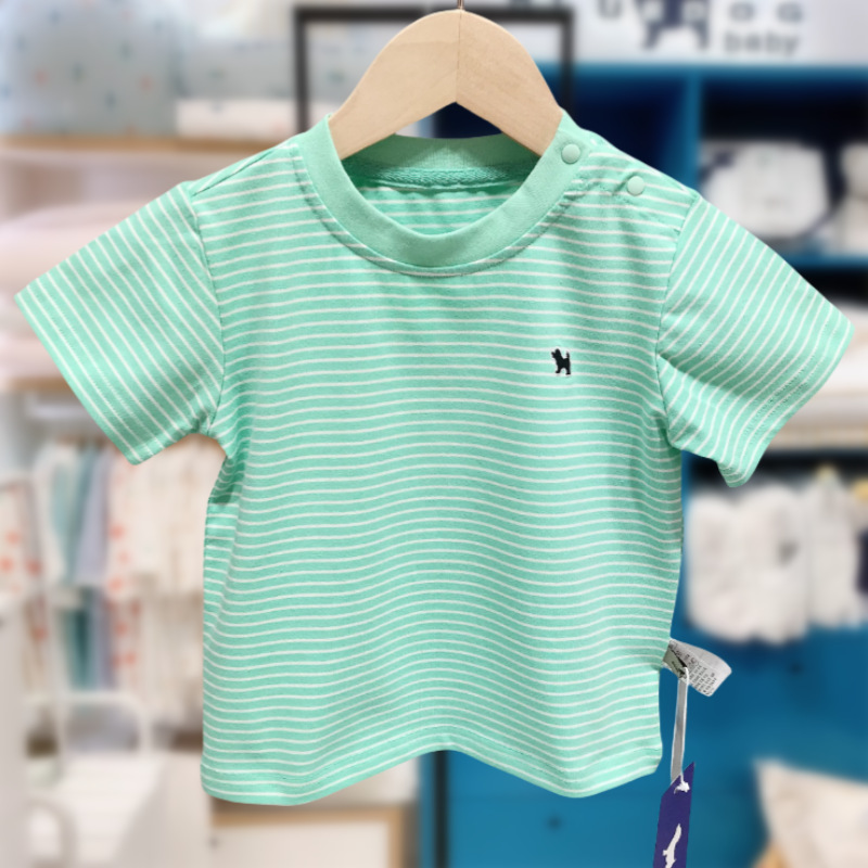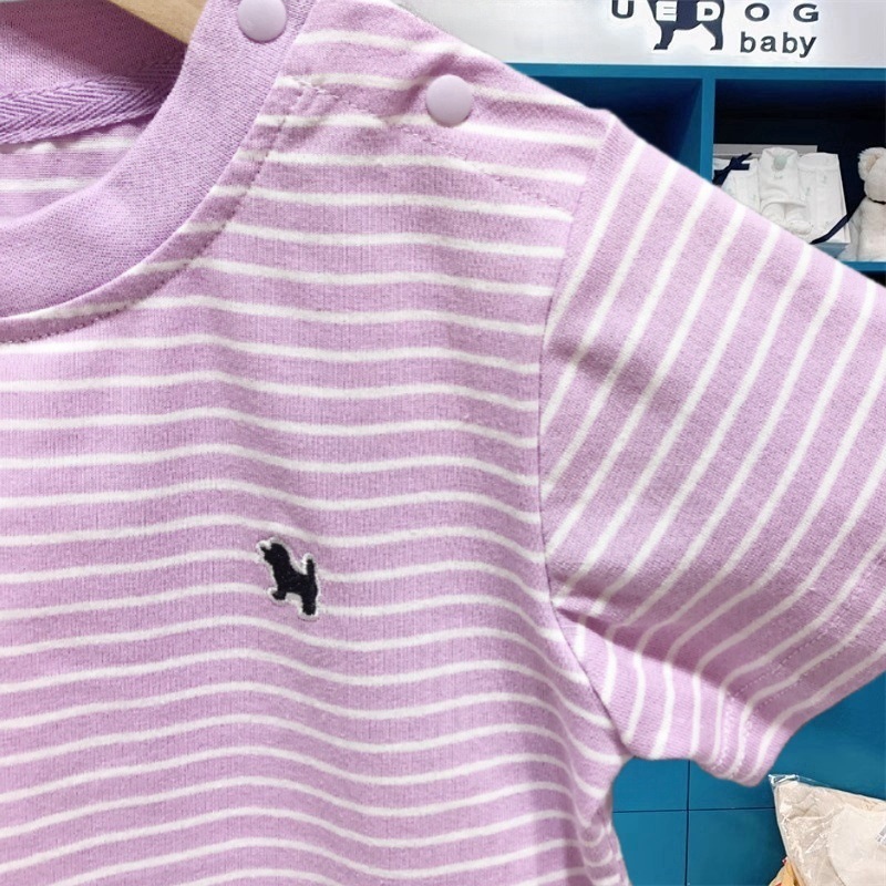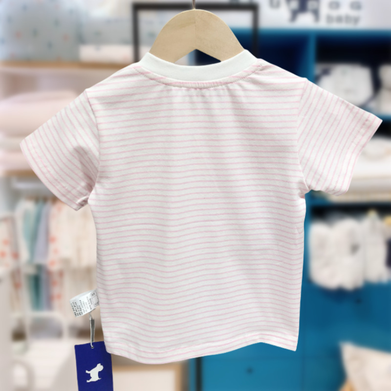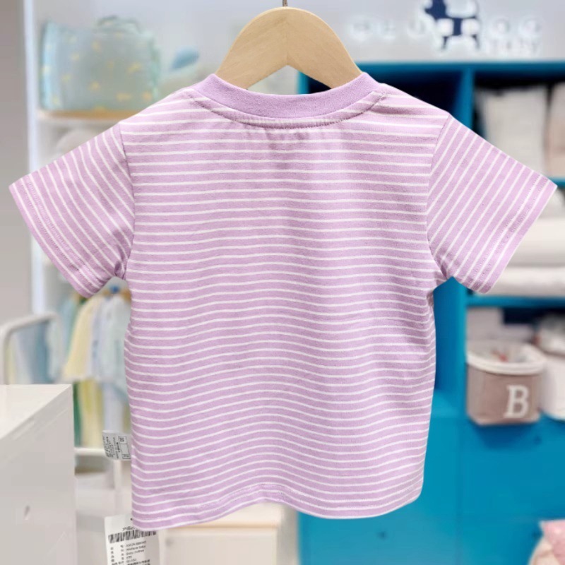 한국 아동복 여름 소년 소녀 멀티 컬러 스트라이프 라운드 넥 티셔츠 짧은 소매 상단 MS550504스토어 가기