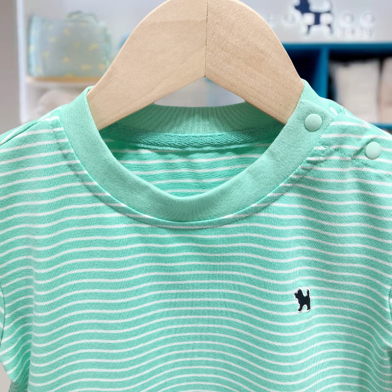 한국 아동복 여름 소년 소녀 멀티 컬러 스트라이프 라운드 넥 티셔츠 짧은 소매 상단 MS550504