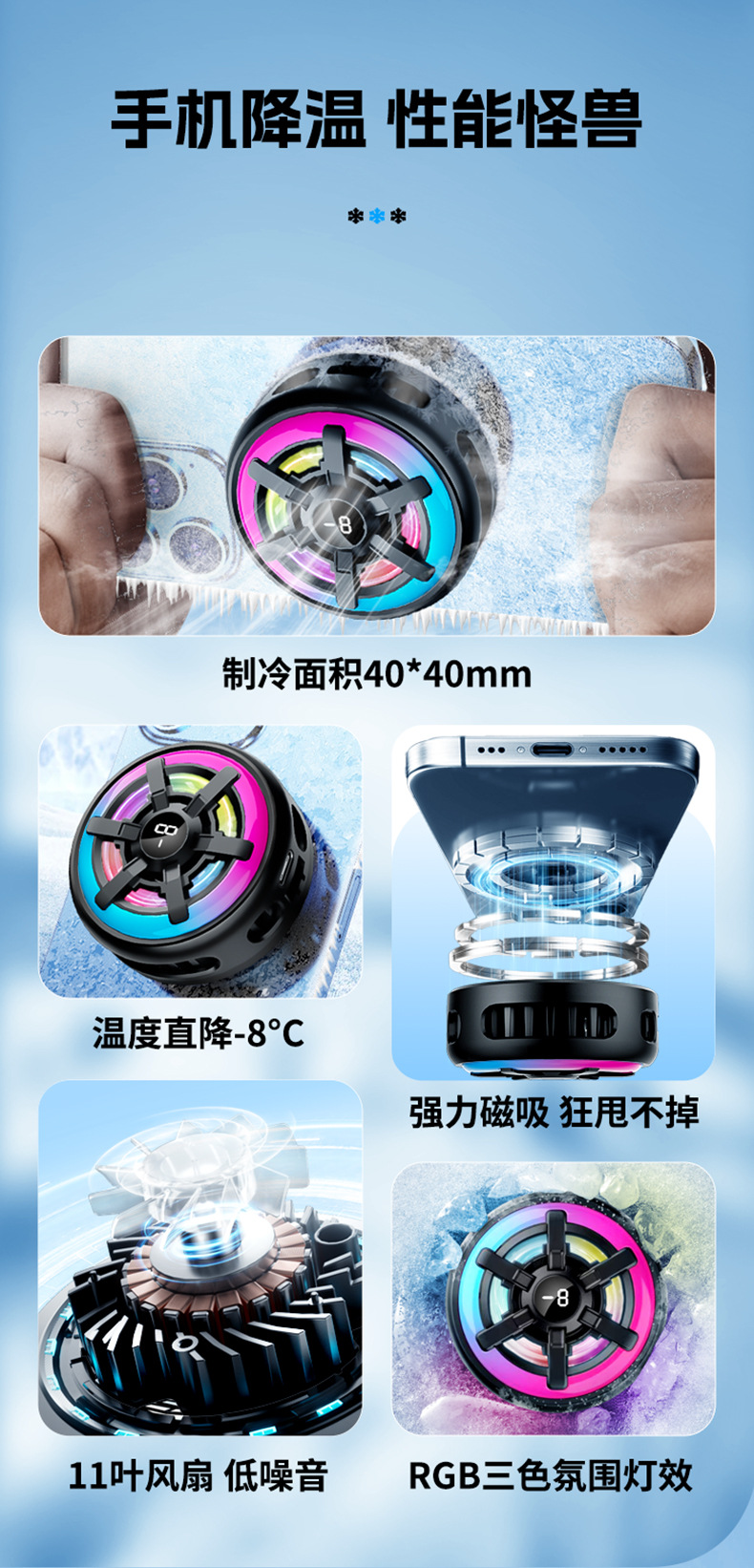 2025 새로운 휴대 전화 라디에이터 AI 주파수 변환 반도체 아이싱 자기 라이브 냉동 냉각기스토어 가기