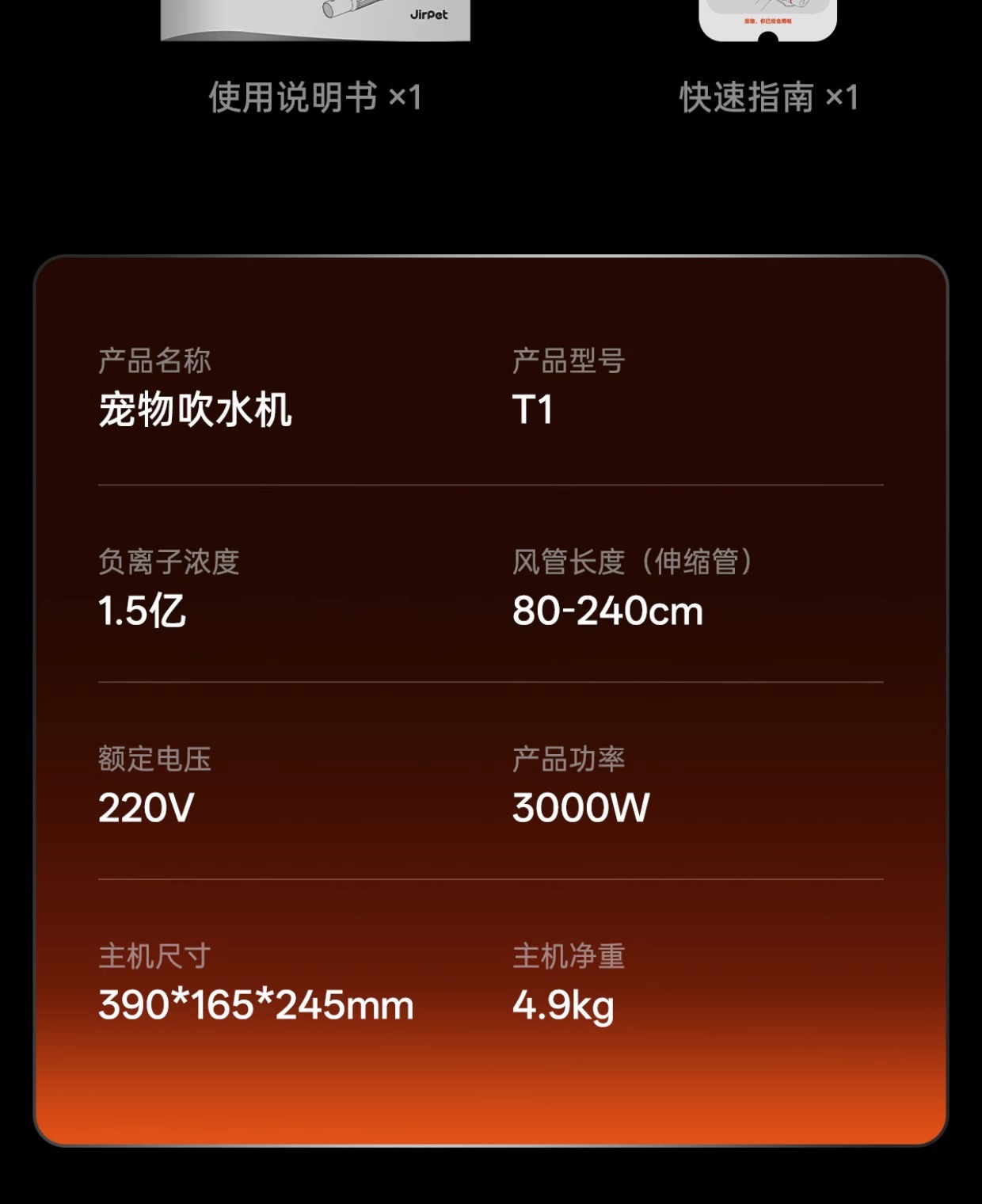 지르펫T1 애완동물 듀얼 모터 음이온 블로워, 중대형견 및 고양이 목욕 및 빠른 털 건조스토어 가기