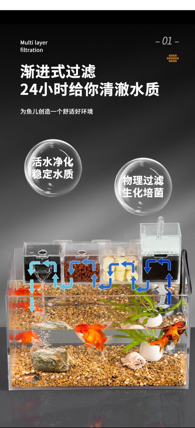 어항 거북이 탱크 필터는 정수 사이클 3 대 1 다층 음소거 폭포 산소 증가 드립 박스와 함께 설치됩니다.스토어 가기