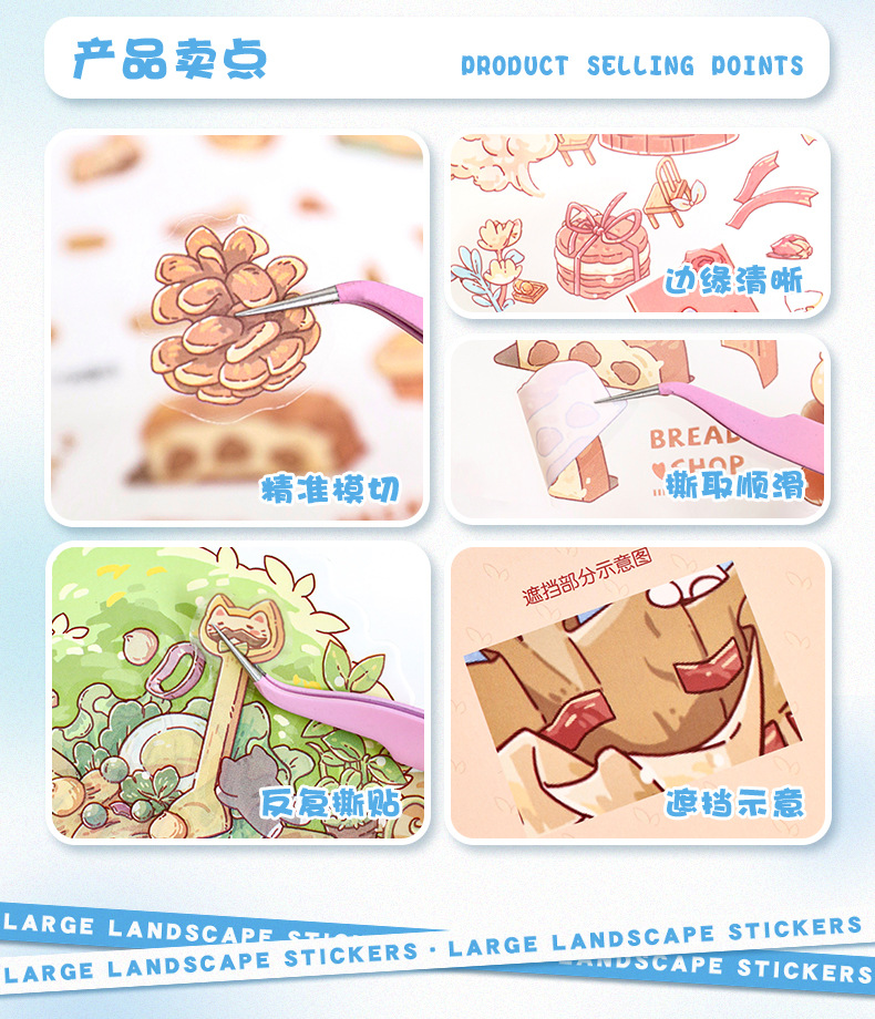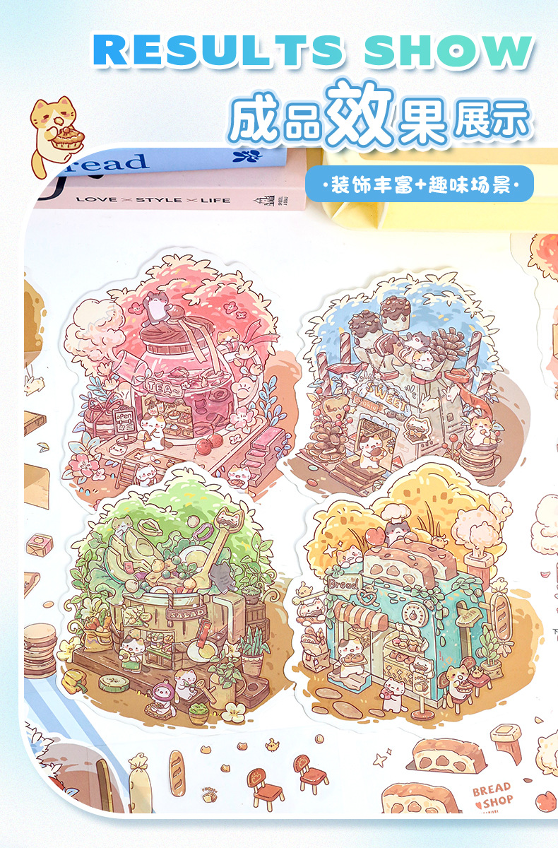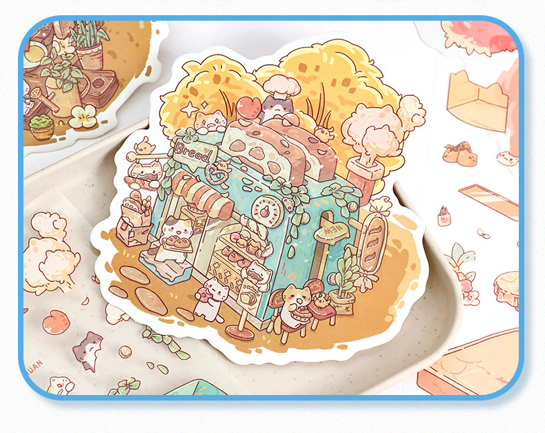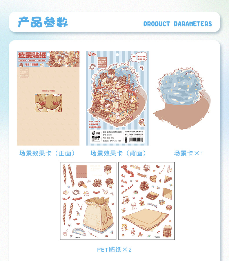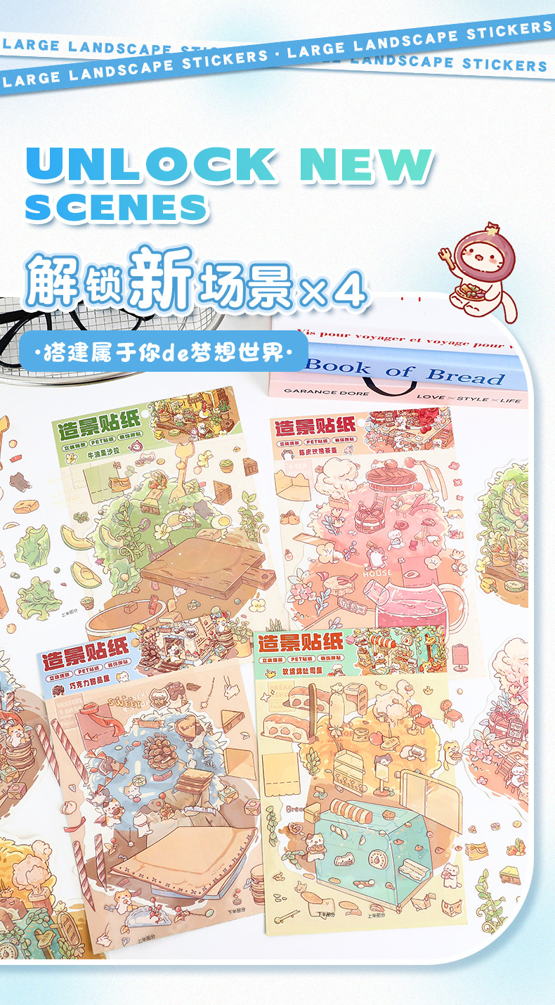 국경 만화 예술 푸른 풍경 스티커 귀여운 3D 3 차원 오두막 마이크로 스케일 장면 철자 어린이 장난감 스티커 스티커 스티커스토어 가기