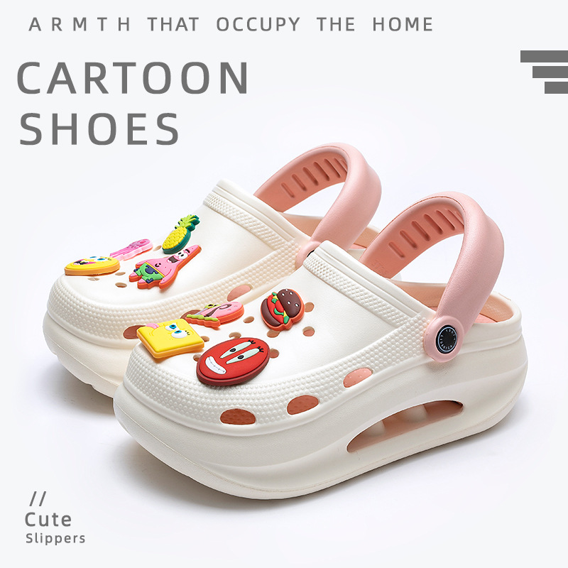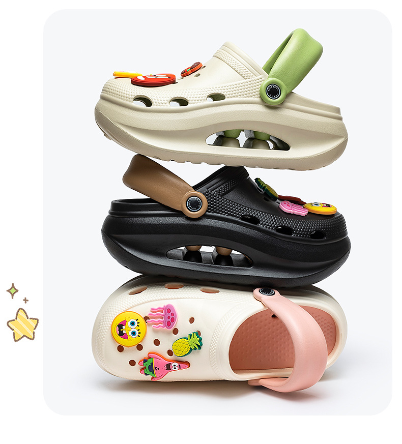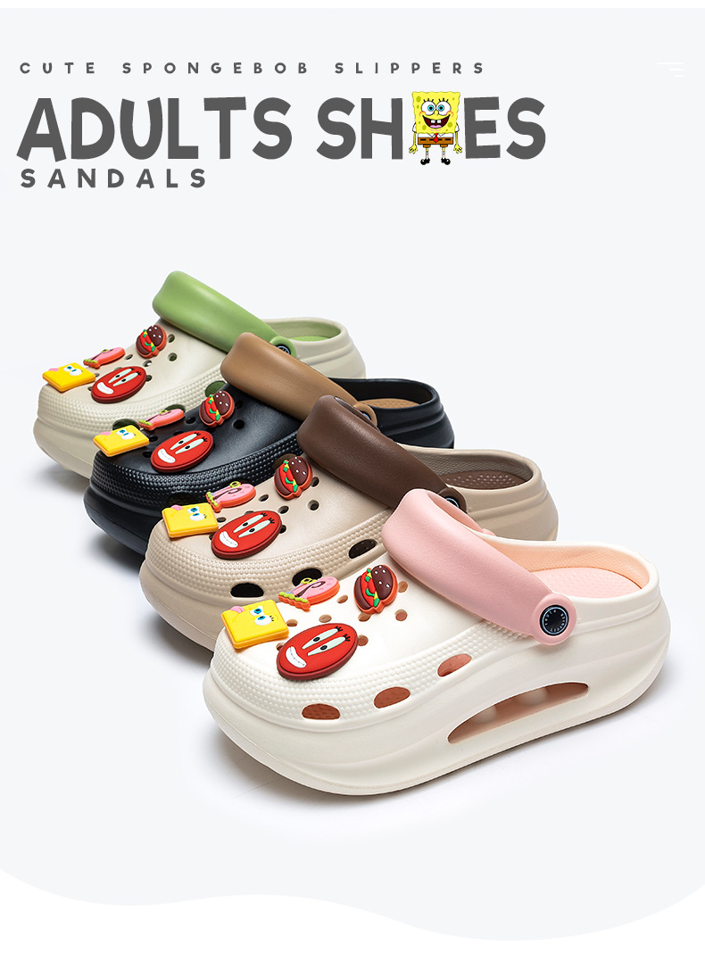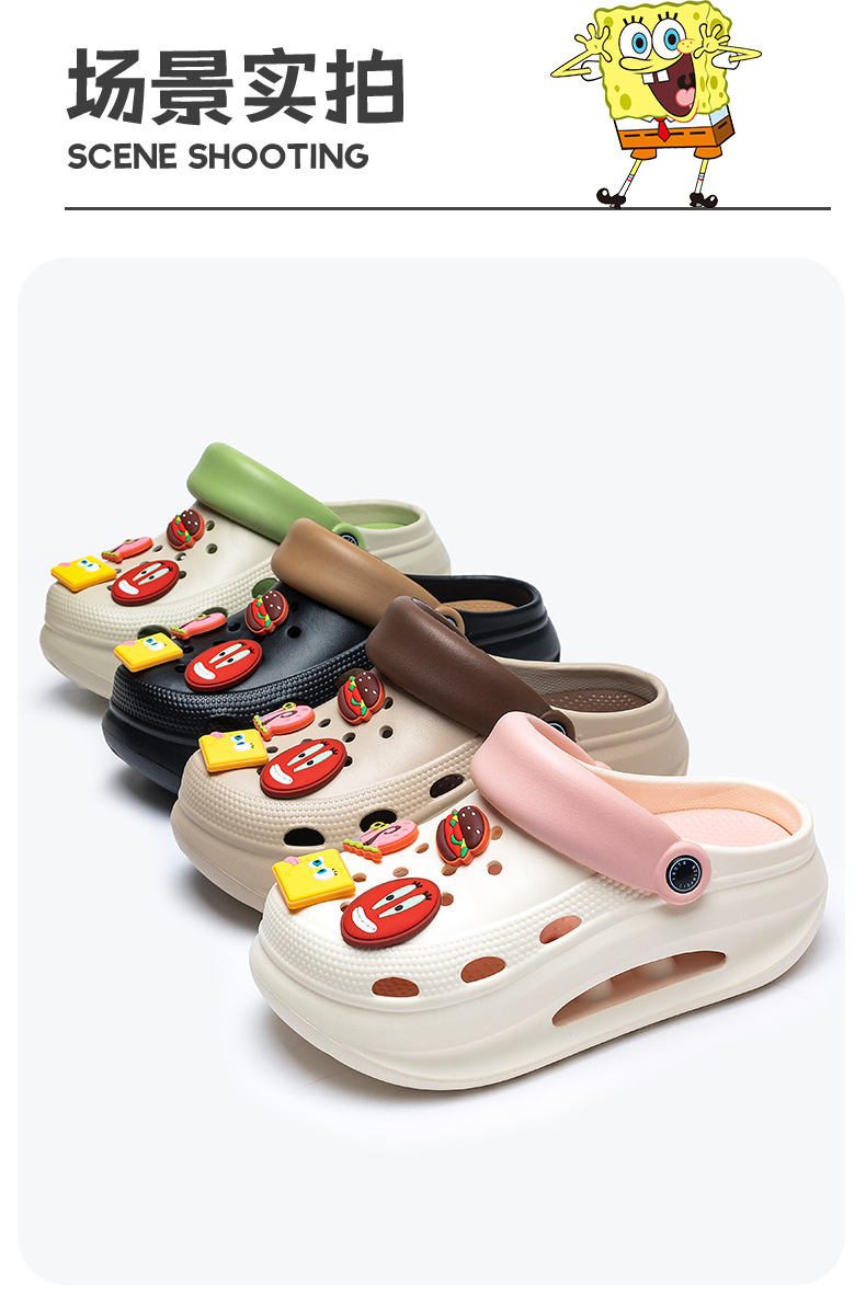 여성용 스폰지밥 두꺼운 밑창 나막신, 여성용 신형 미끄럼 방지 해변 키높이 발가락 샌들 및 슬리퍼, 여름 아우터웨어