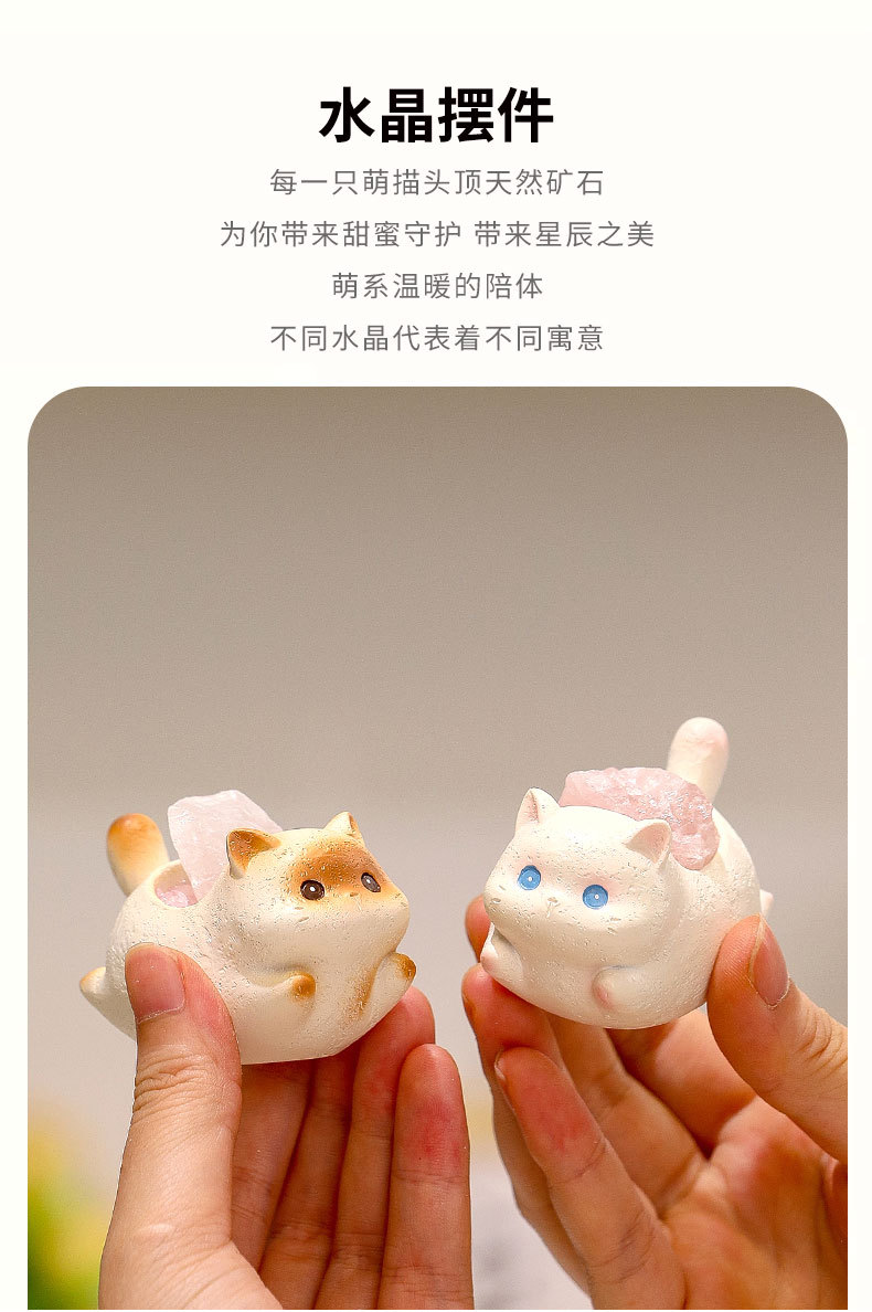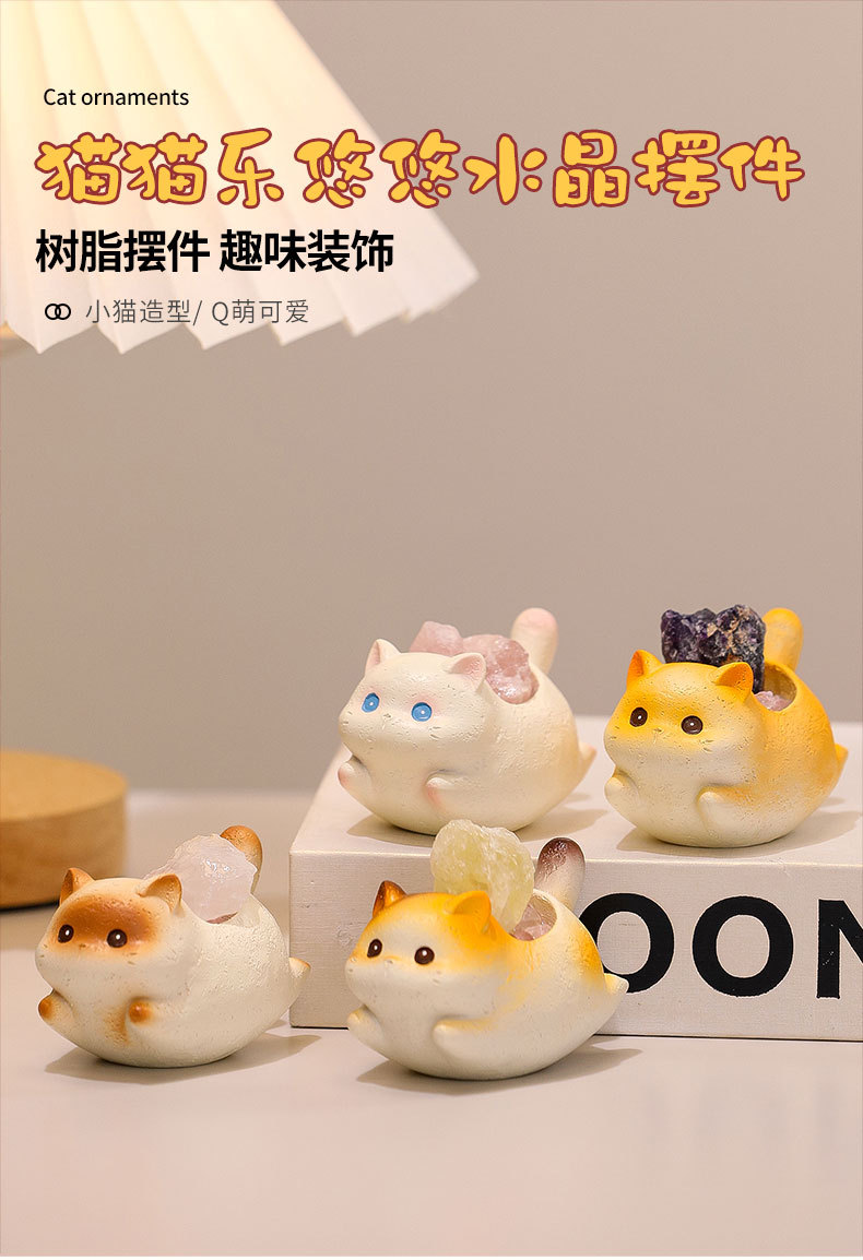 고양이 장식품 크리스탈 신상 귀여운 만화 동물 데스크탑 장식 레진 피규어 사무실 선물 창의적스토어 가기
