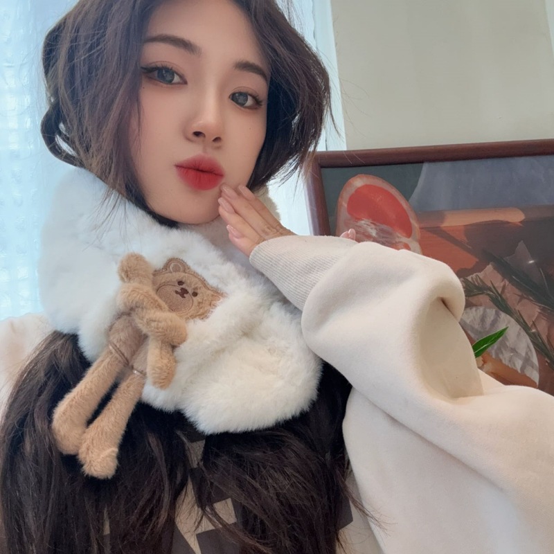 원래 3 차원 인형 곰 만화 귀여운 학생 스카프 토끼 모피 새로운 가을과 겨울 틈새 짧은 스카프 숙녀스토어 가기
