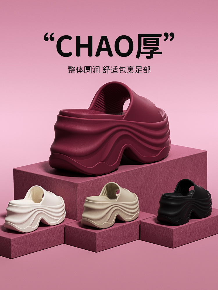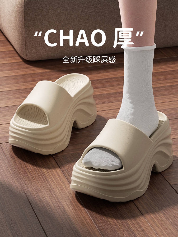2025 여름 아우터용 여성용 신형 키높이 슬리퍼, 방수 및 미끄럼 방지, 여성용 인터넷 연예인 두꺼운 밑창 샌들스토어 가기