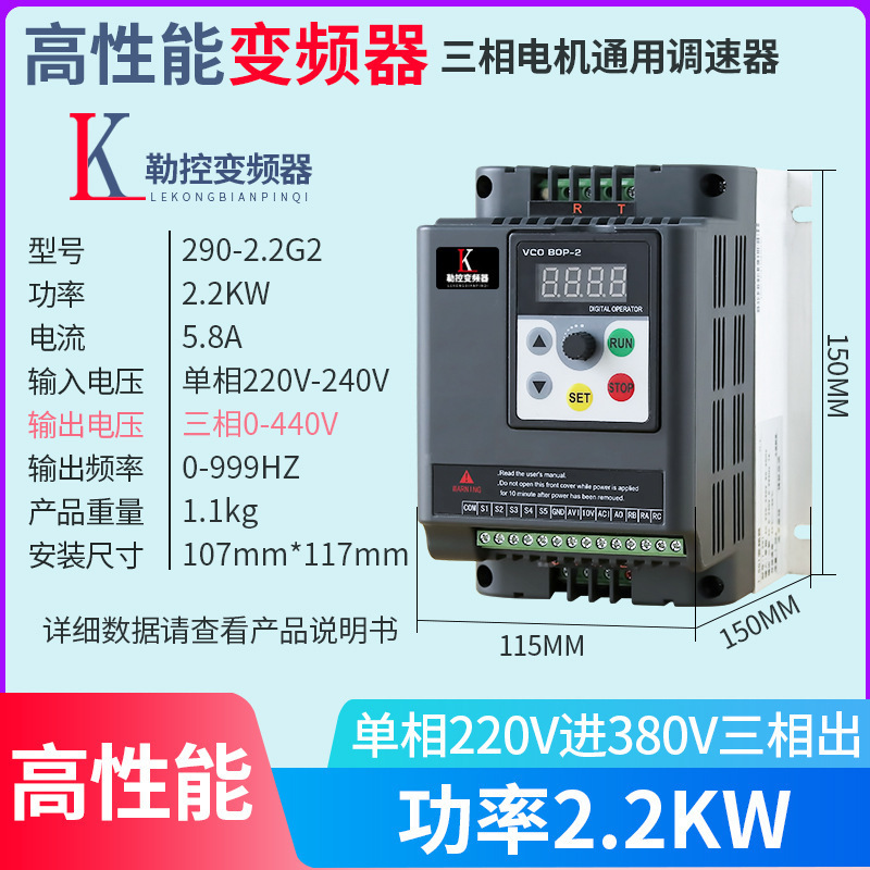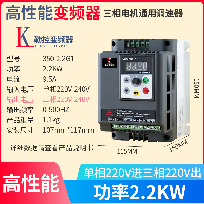 • 220V 단상 입력 및 3상 출력 2.2KW