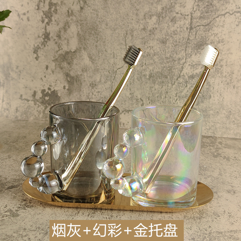 새로운 가벼운 고급 유리 칫솔질 및 구강 세정제 컵 가정용 고가치 창의적 커플 칫솔 컵 워시 컵 세트