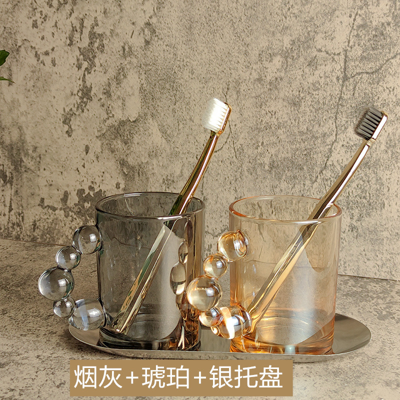 새로운 가벼운 고급 유리 칫솔질 및 구강 세정제 컵 가정용 고가치 창의적 커플 칫솔 컵 워시 컵 세트스토어 가기