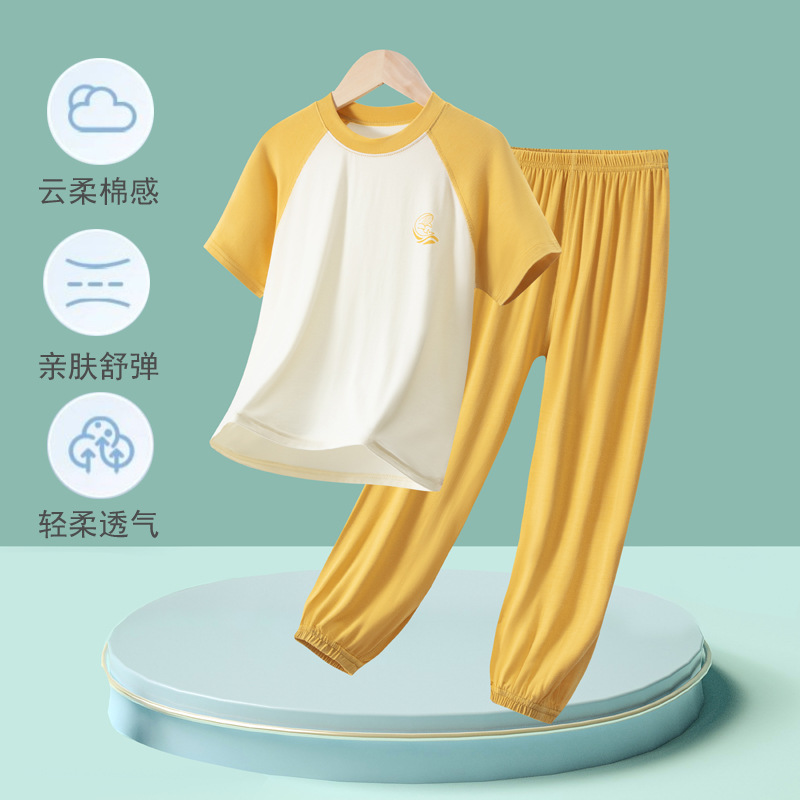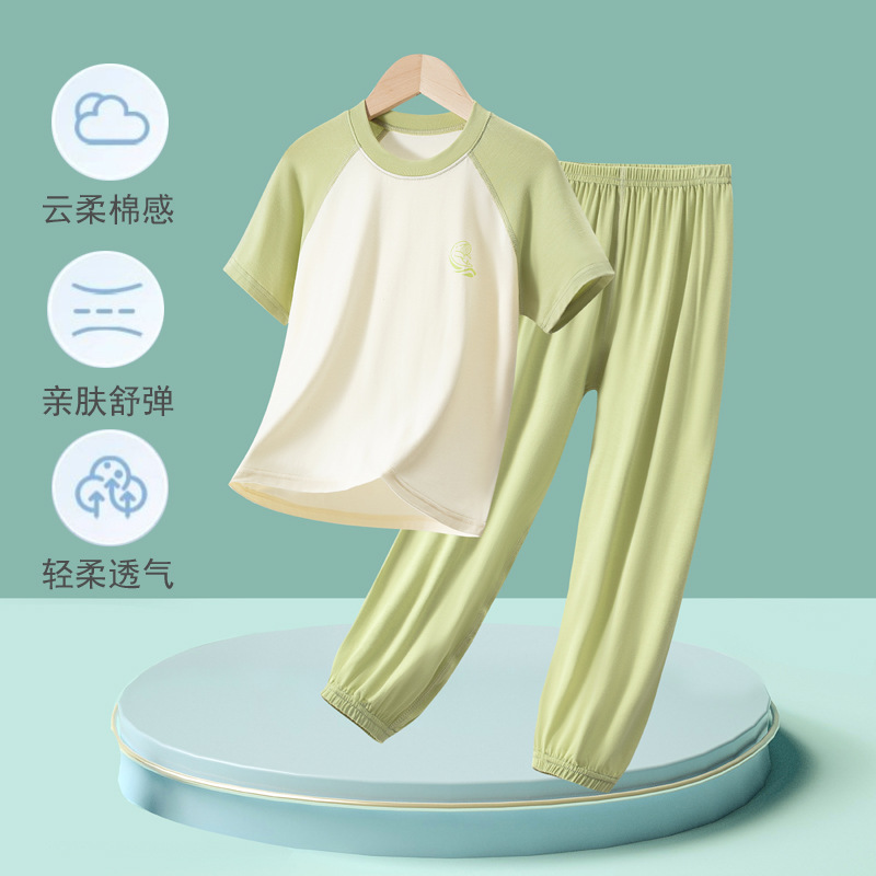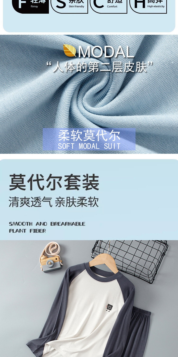 모달 아동 잠옷, 남아용 가정복 세트, 에어컨 의류, 청소년 가을 옷 및 긴 바지, 여아용 속옷, 통기성스토어 가기