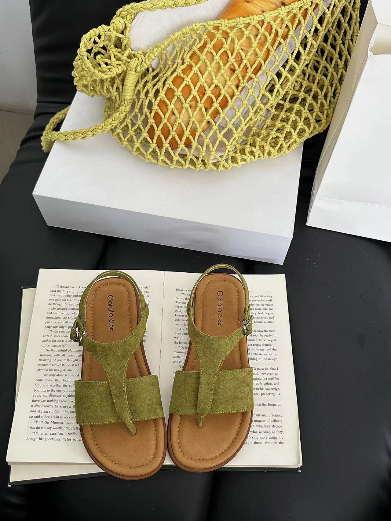 틈새 정품 가죽 플랫 샌들 클립 발가락 여성용 여름 새로운 소프트 솔 편안한 할로우 통기성 로마 샌들스토어 가기