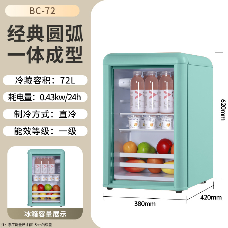 • 1단계 에너지 절약 72리터 레트로 그린 투명 유리 아이스바, 완전 냉장 + 백색광(손상 보장)