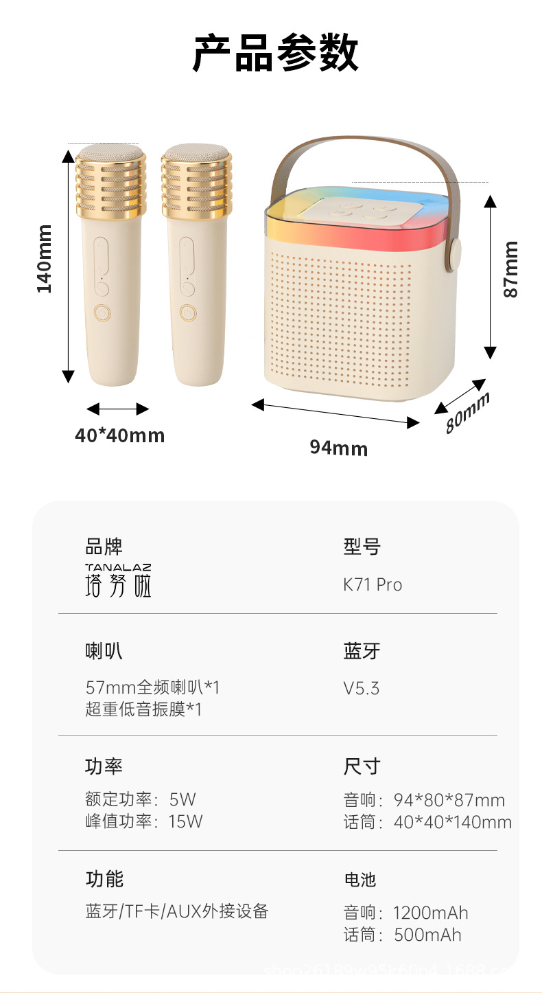 TANALAZ K71Pro 오디오 마이크 마이크 통합 블루투스 스피커 휴대용 홈 무선 노래방