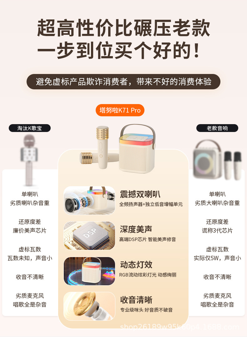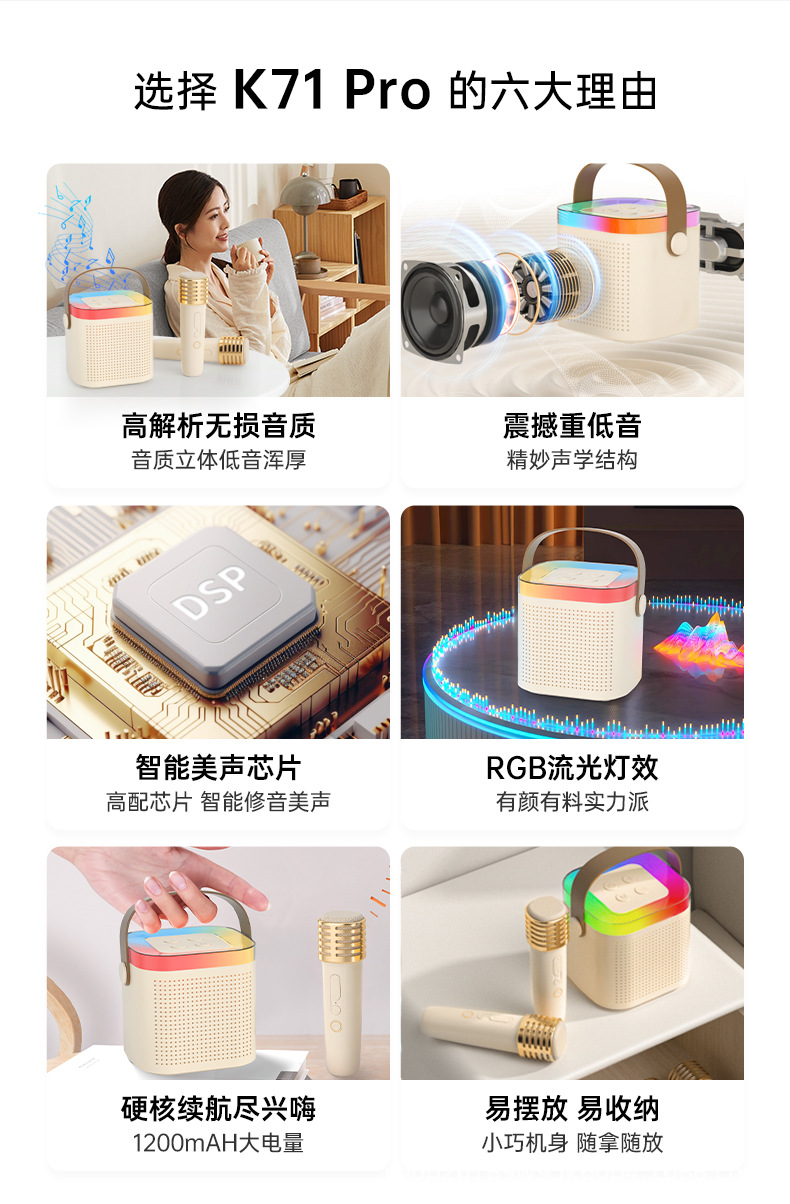 TANALAZ K71Pro 오디오 마이크 마이크 통합 블루투스 스피커 휴대용 홈 무선 노래방스토어 가기