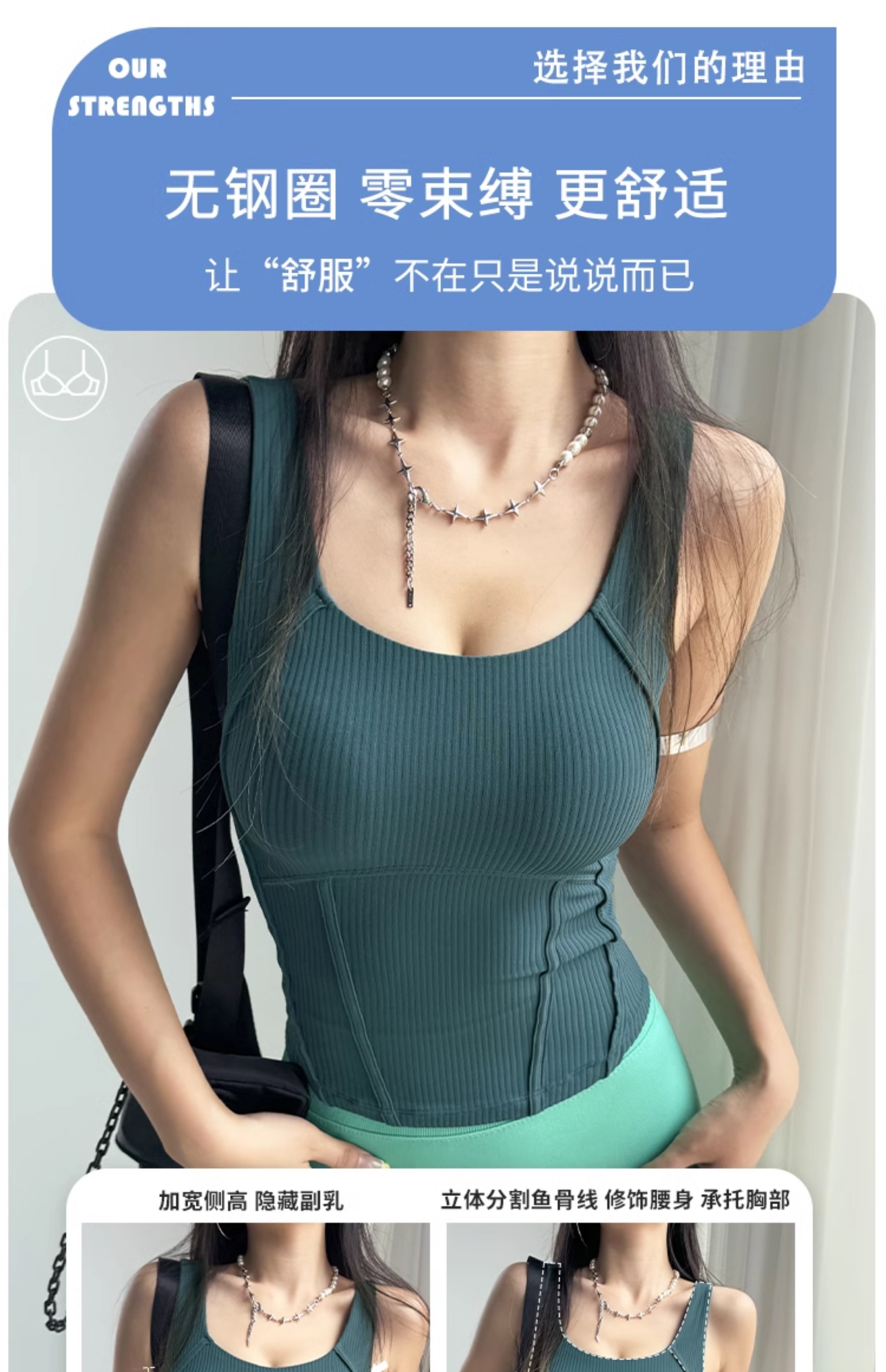여성용 원컵 런닝 스포츠 브라, 피쉬본 허리 슬리밍 요가 조끼, 아우터용 고강도 충격 방지 피트니스 브라스토어 가기