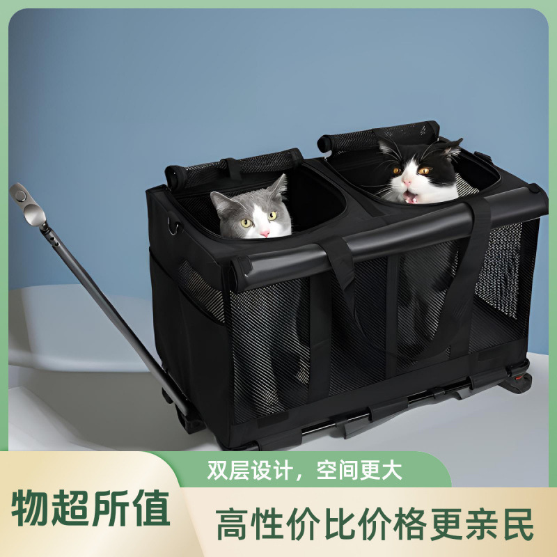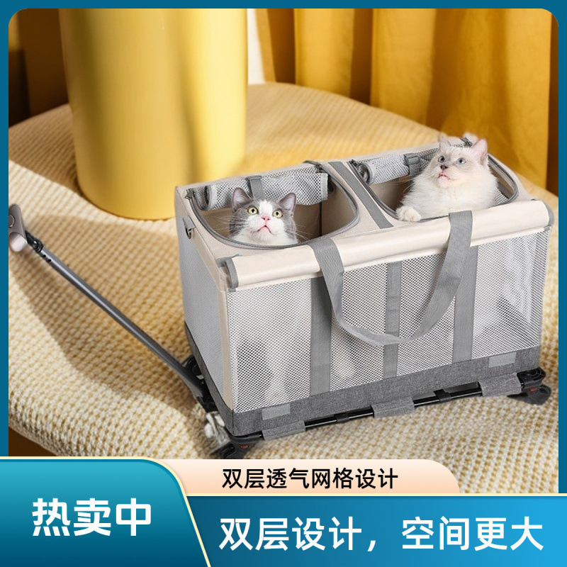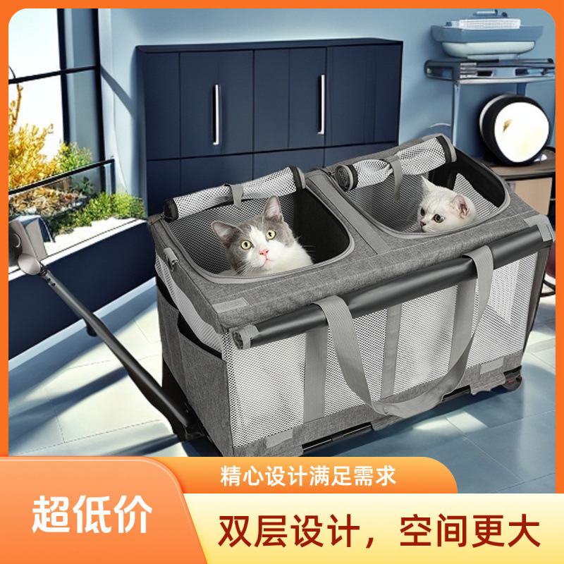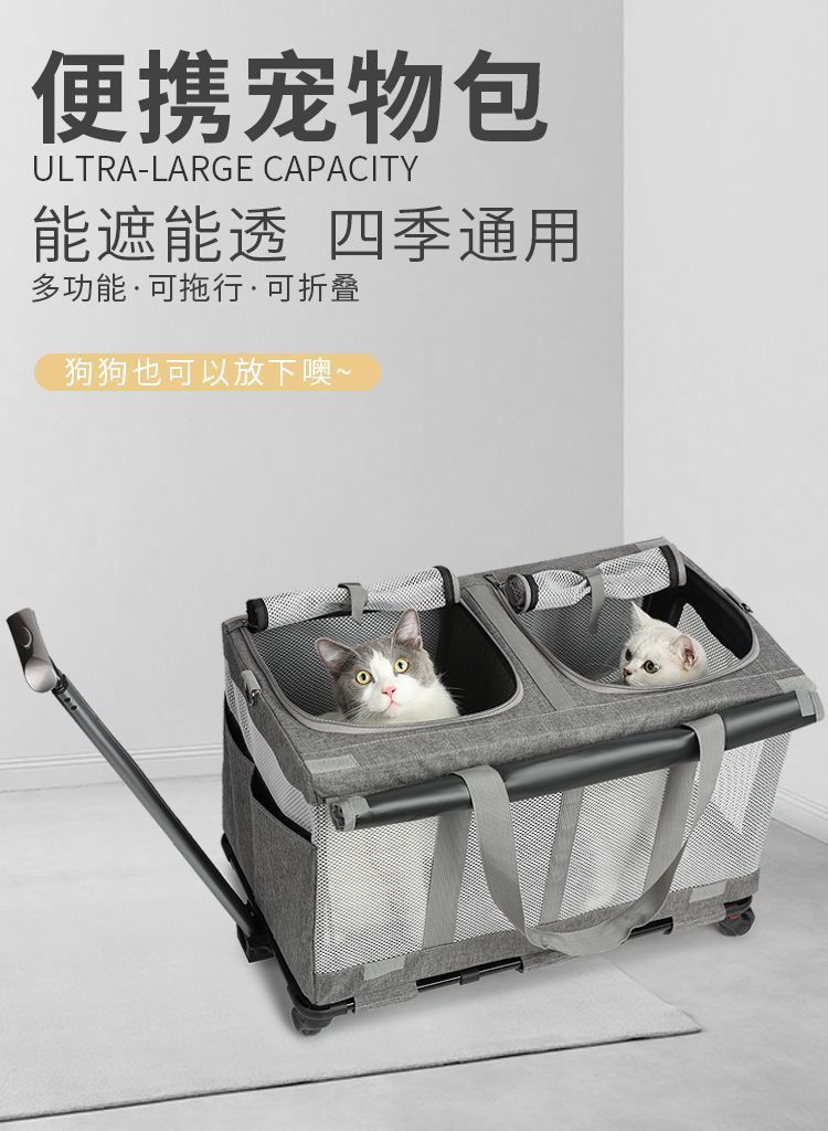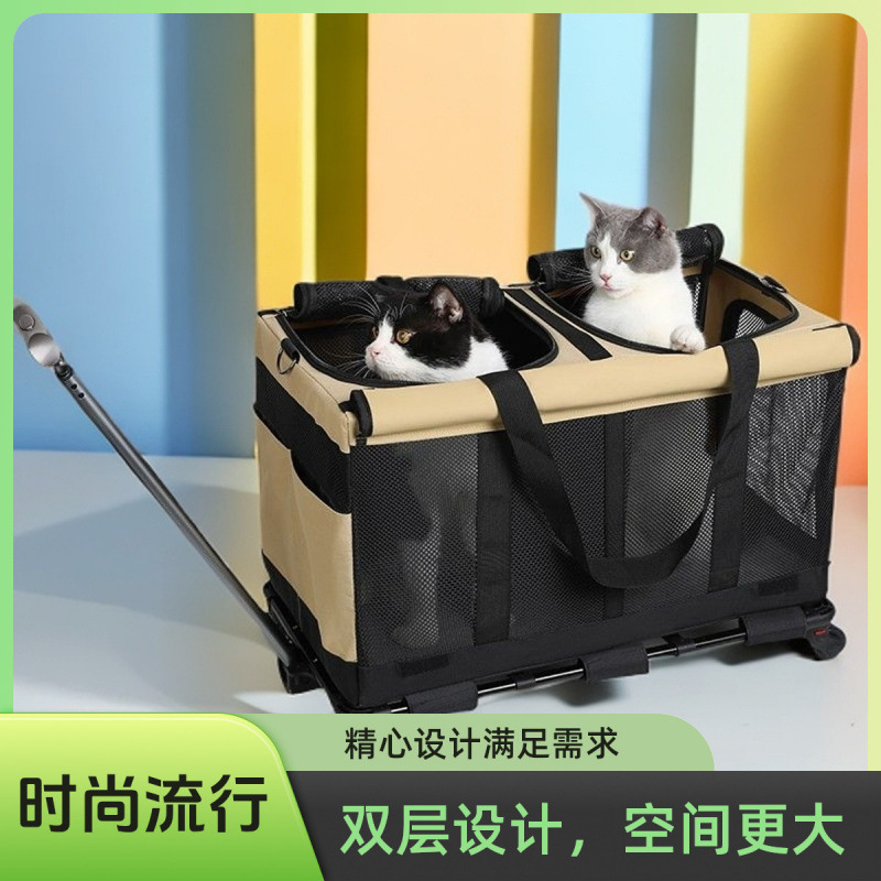새로운 고양이 가방 고양이 밖으로 트롤리 케이스 멀티 고양이 접이식 가방 휴대용 자동차 대용량 통기성 애완 동물 가방