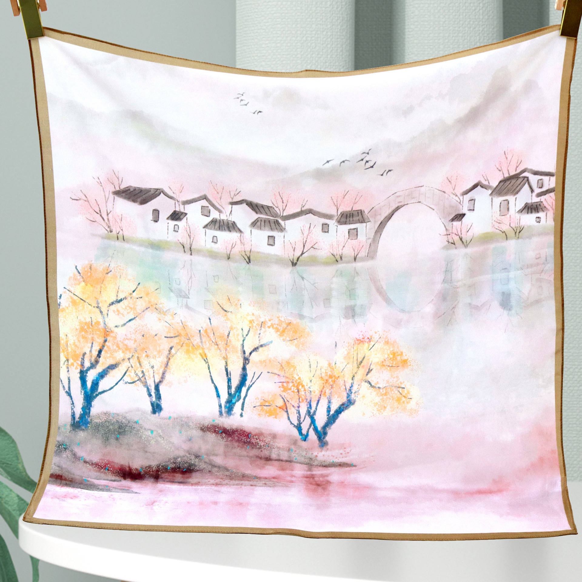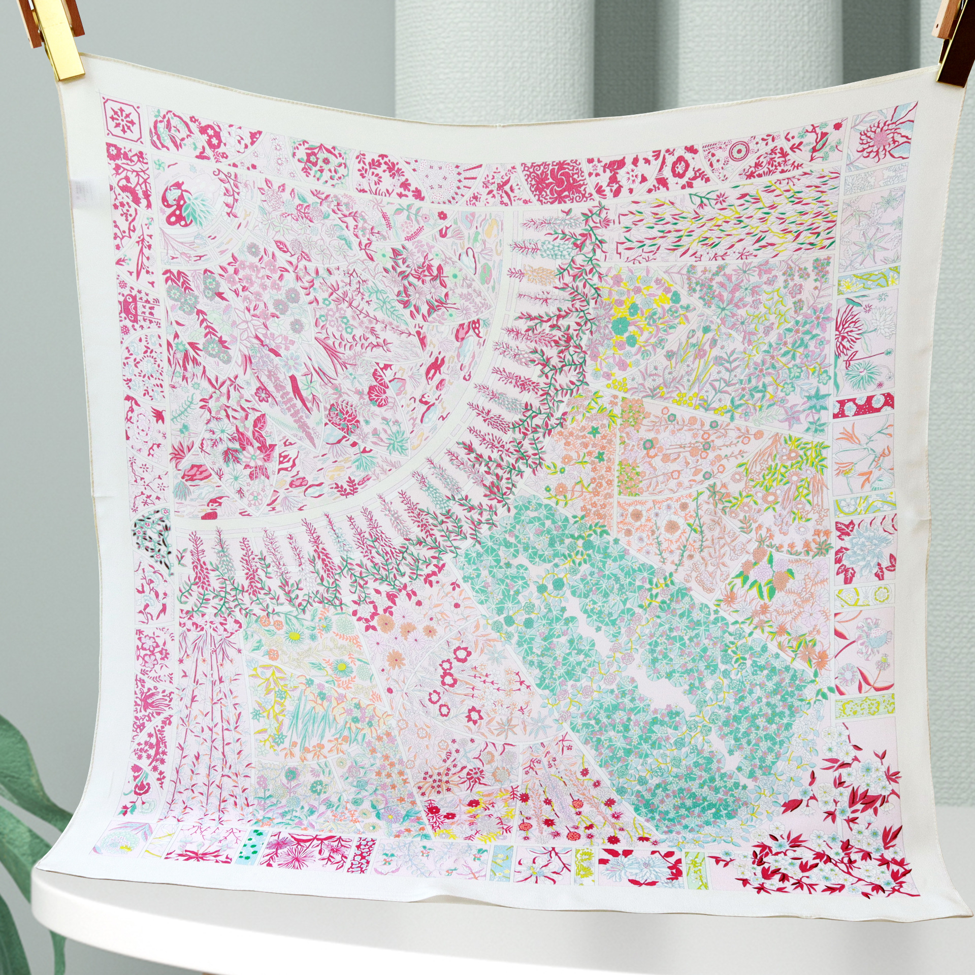 100% 실크 질감의 옛날 스타일 실크 스카프 여성용 봄 여름 패션 다용도 레트로 실크 스카프스토어 가기