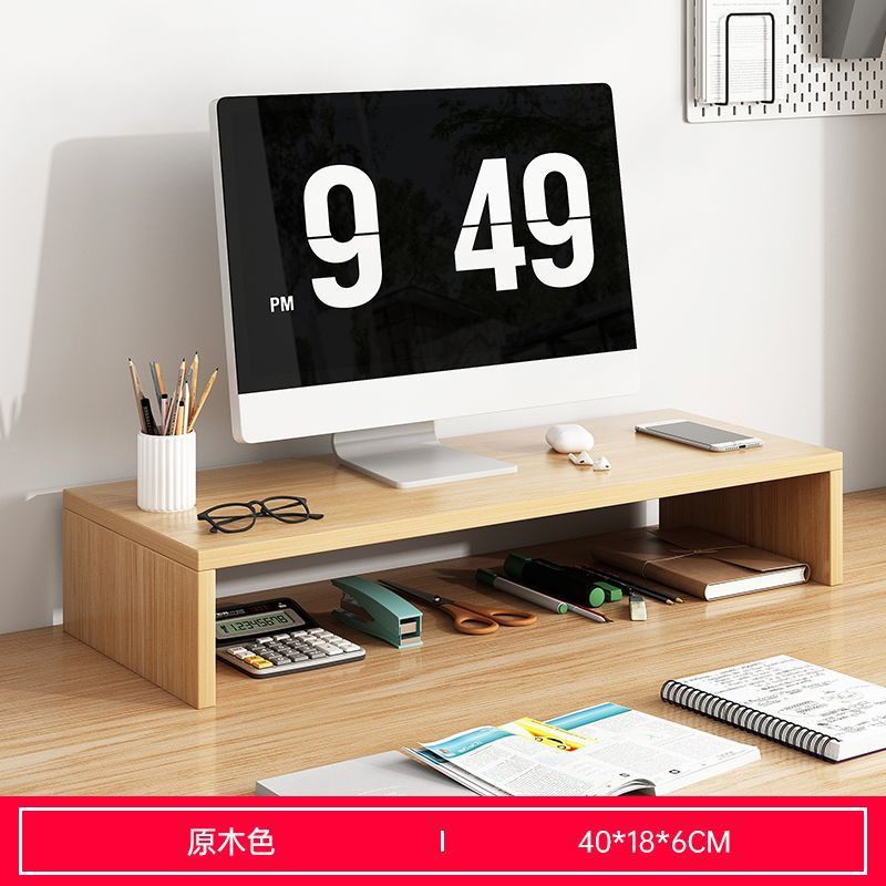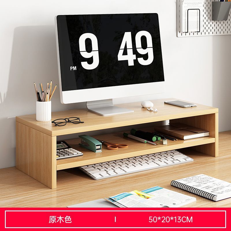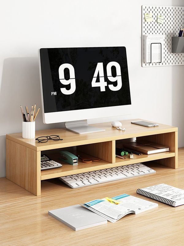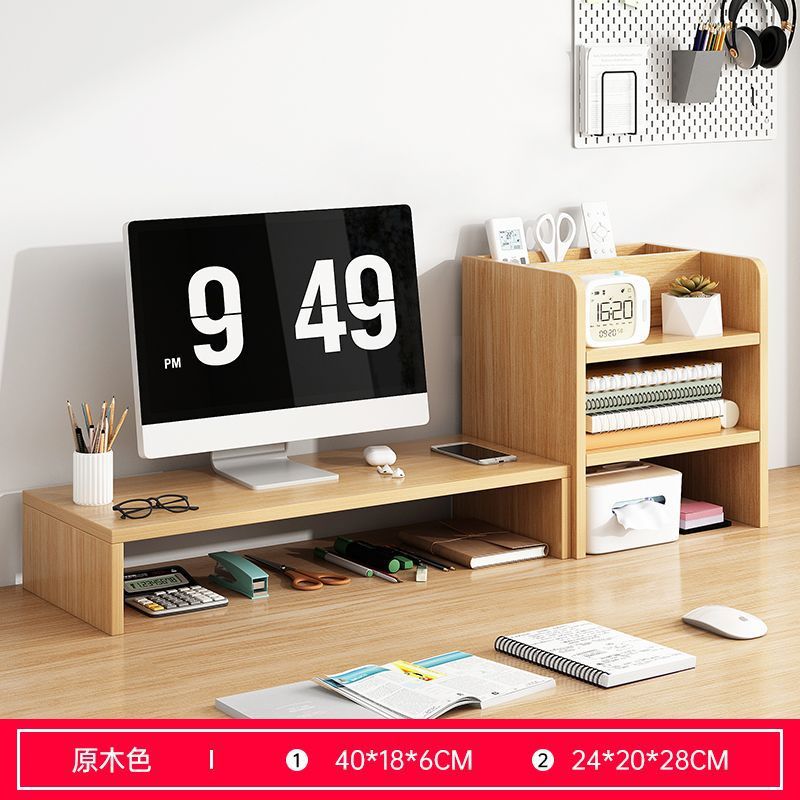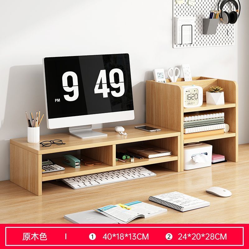 [정리되어 있어 좋습니다] 데스크탑 컴퓨터 나무 선반 데스크탑 보관함 모니터 지지대 높이 조절 보관함