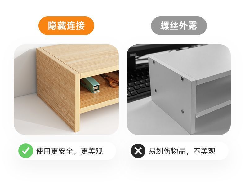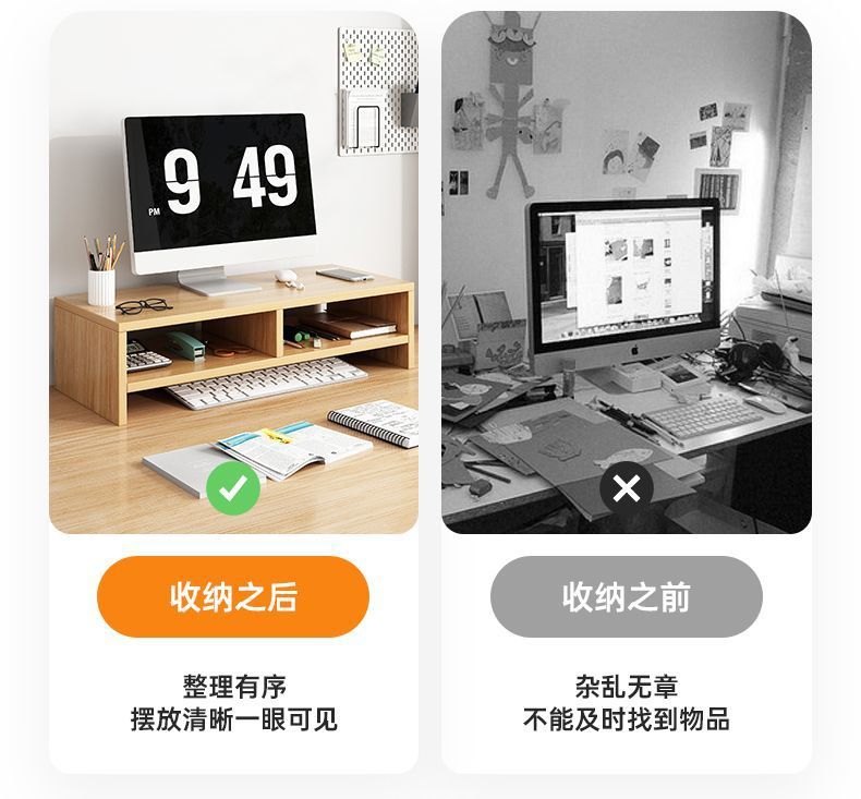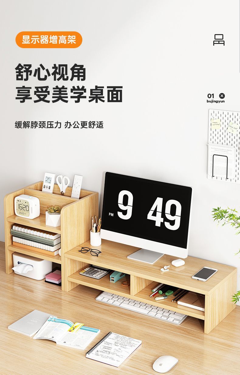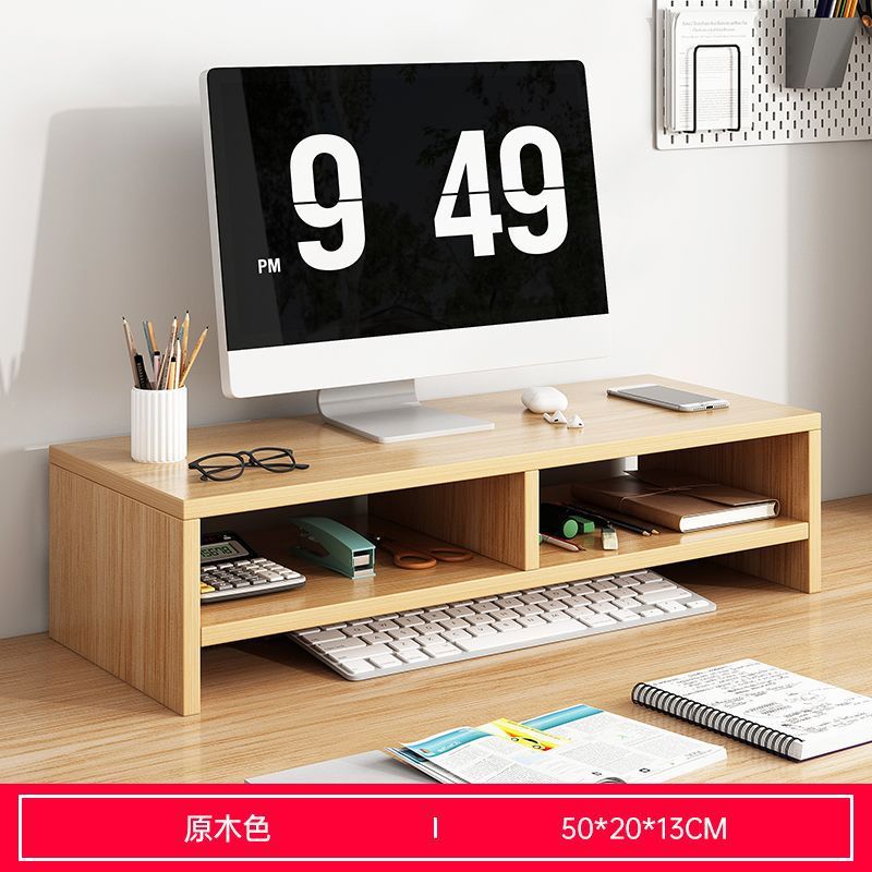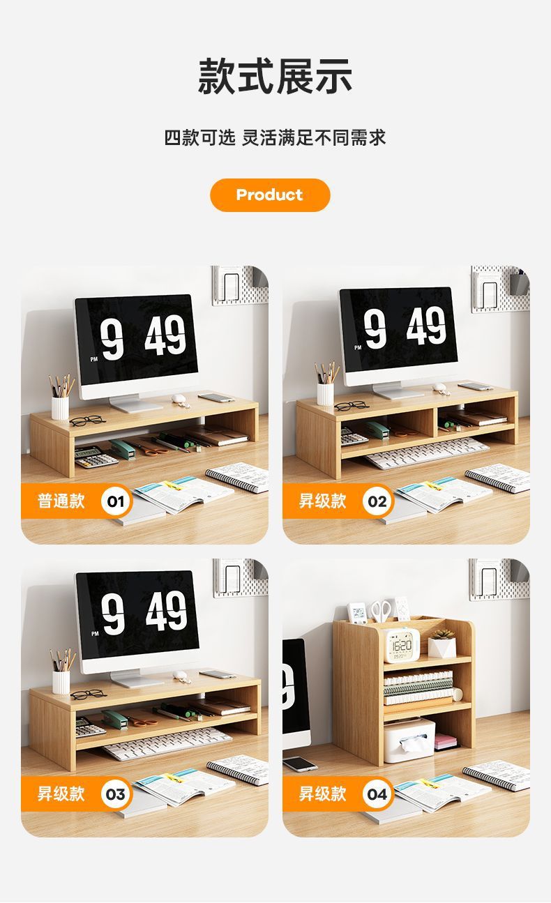 [정리되어 있어 좋습니다] 데스크탑 컴퓨터 나무 선반 데스크탑 보관함 모니터 지지대 높이 조절 보관함