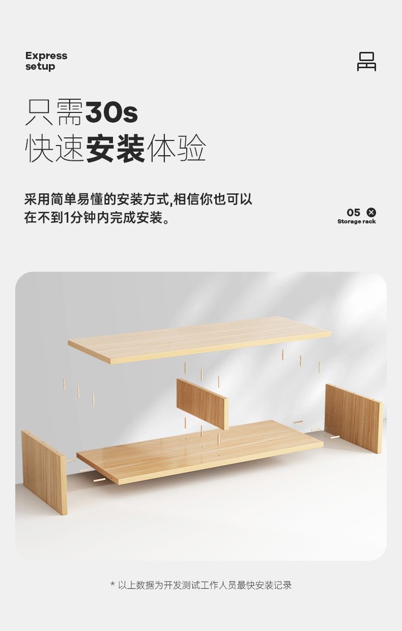 • 단층 확장 및 높은 선반 + 3단 수납 선반 클래식 우드 컬러