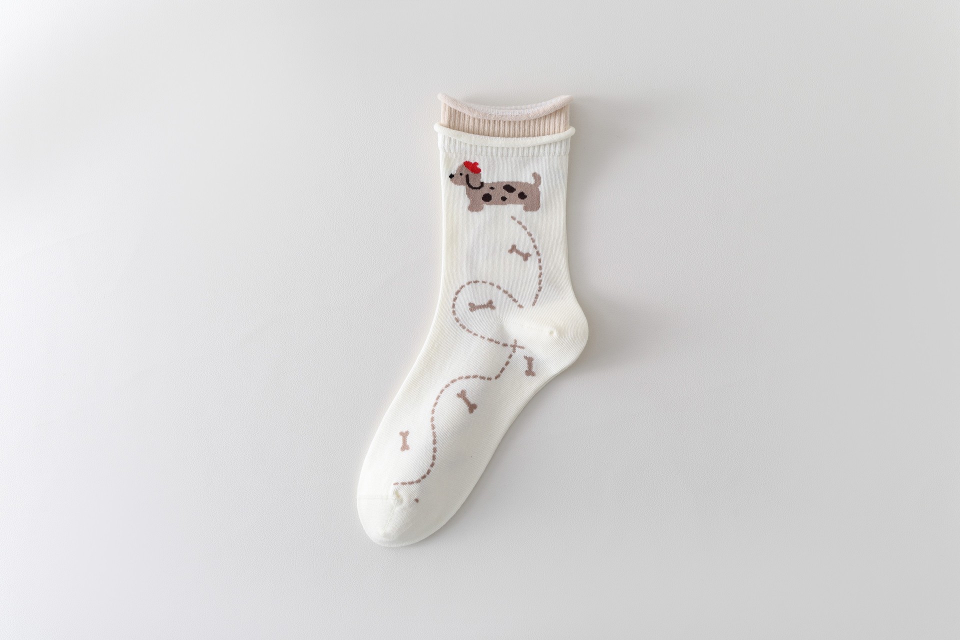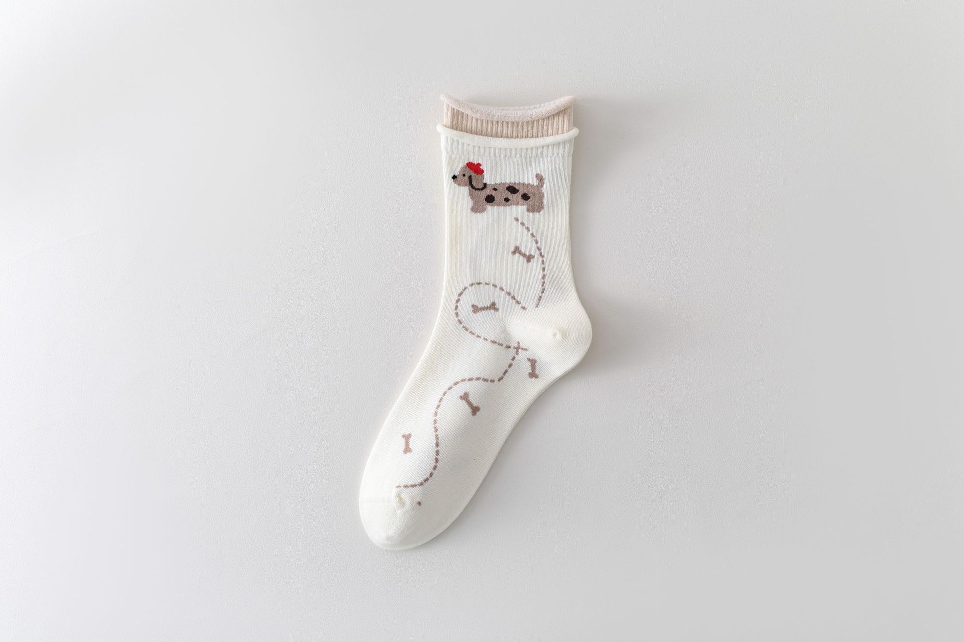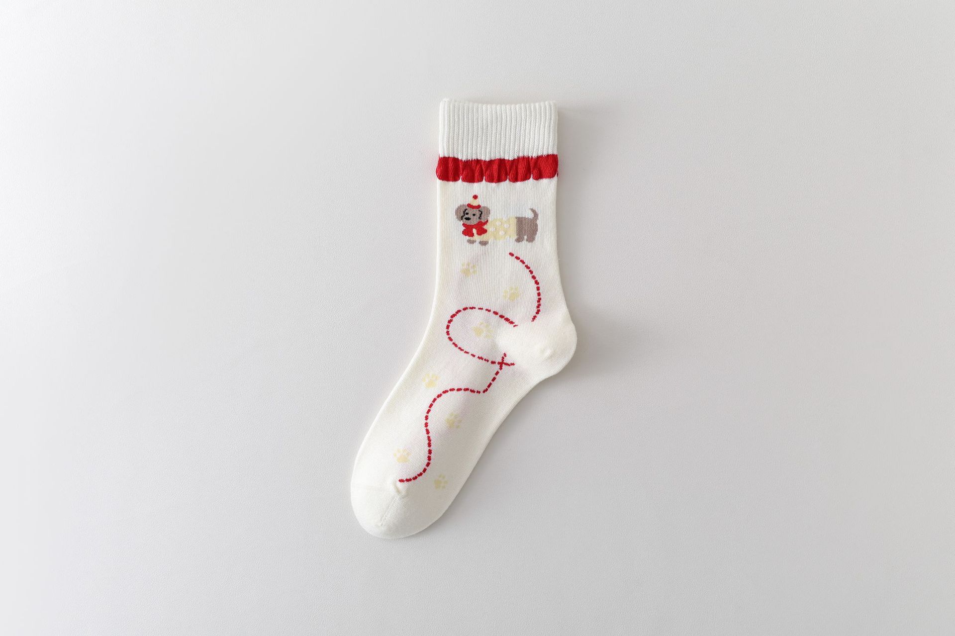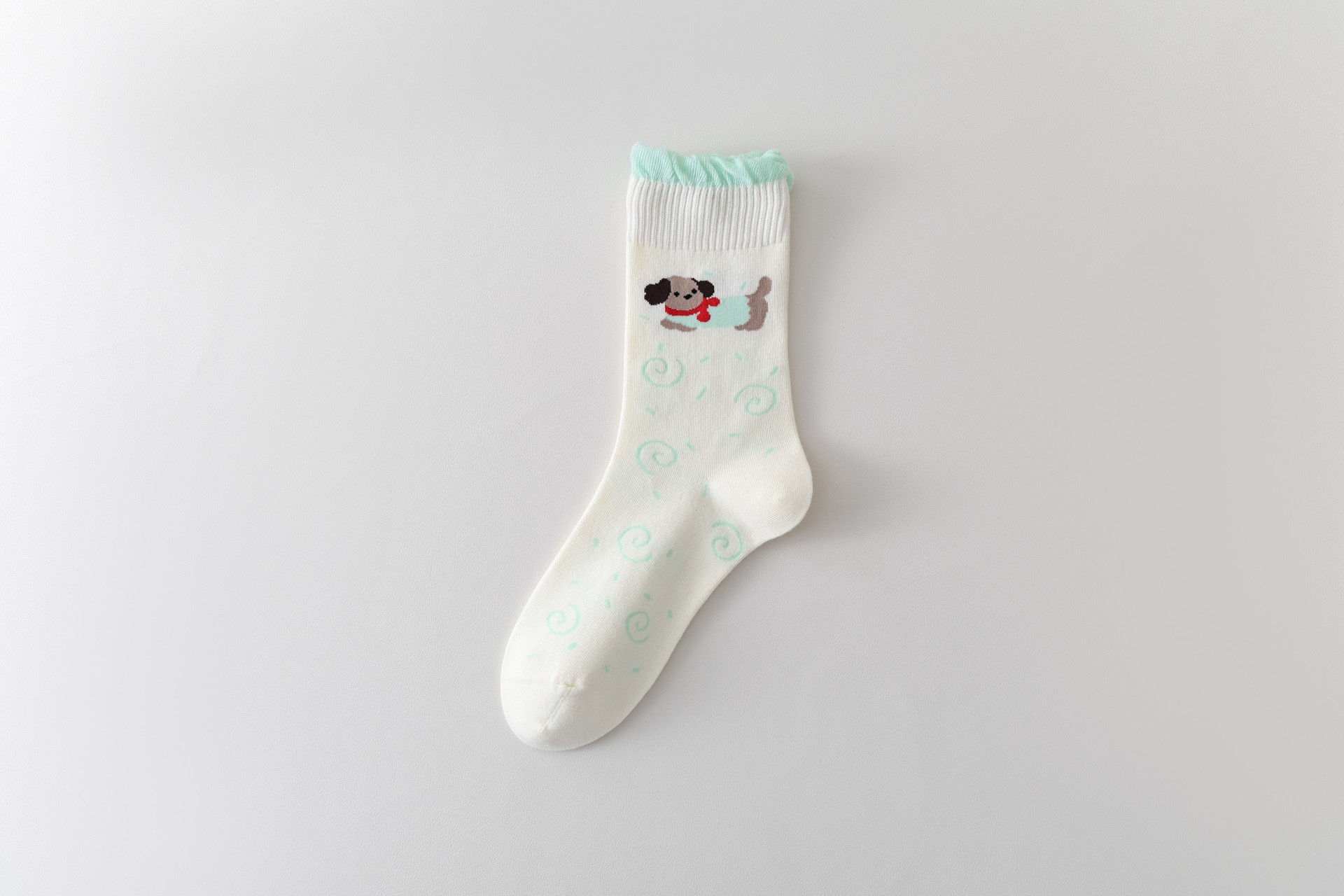 DUDU 눈 봄과 가을 새로운 살라미 강아지의 날 사계절 면 양말 만화 패턴 귀여운 중간 양말스토어 가기