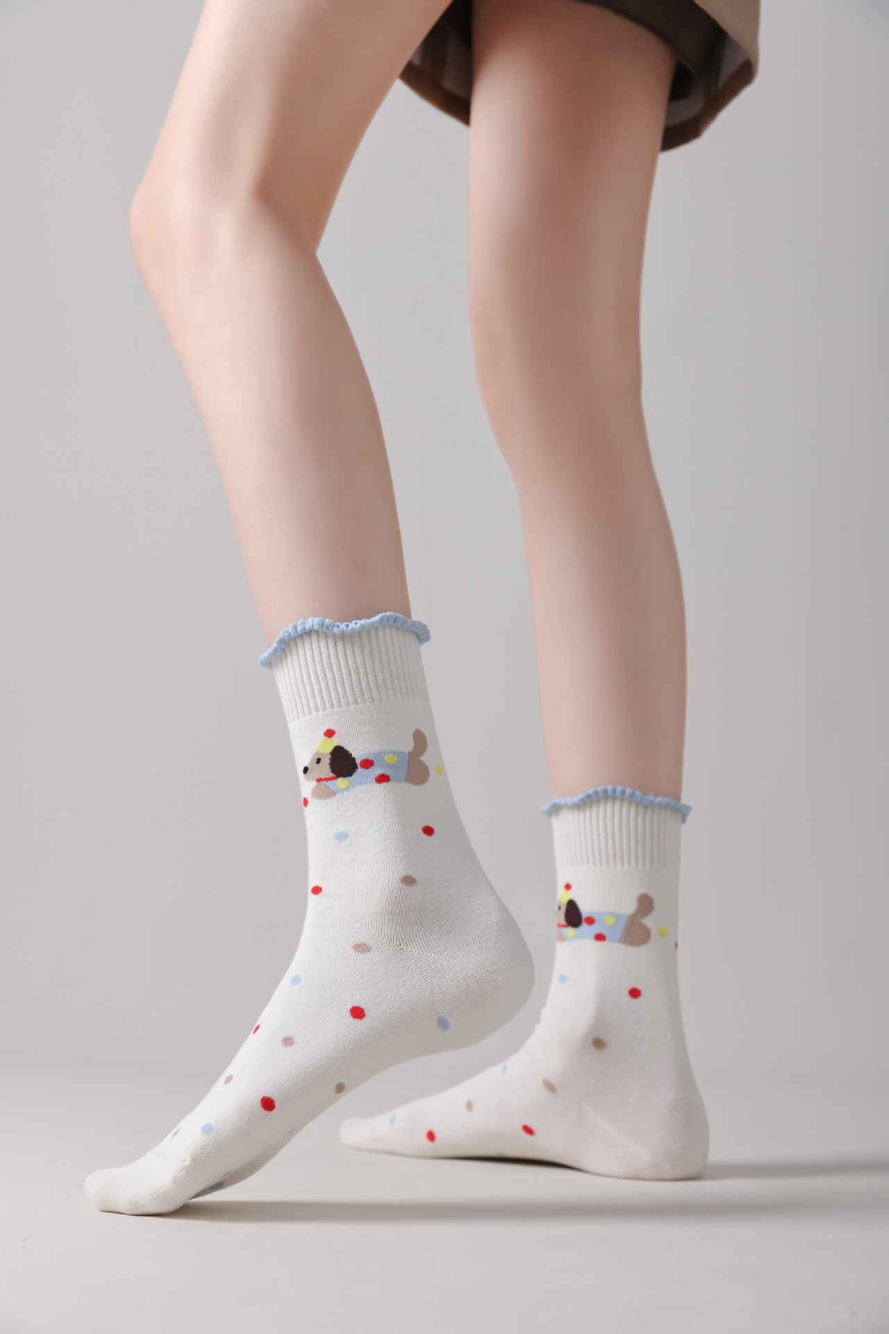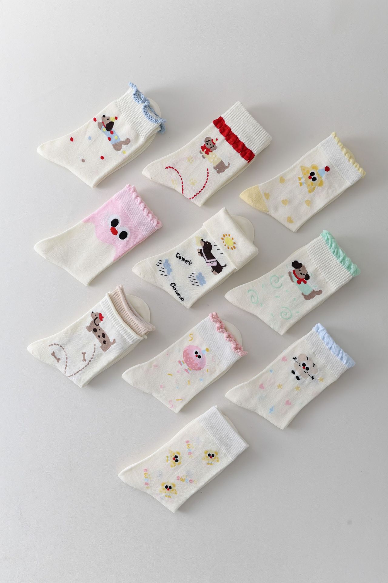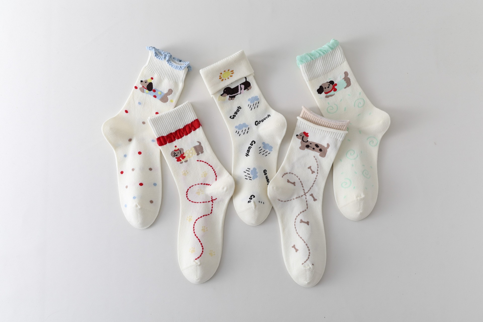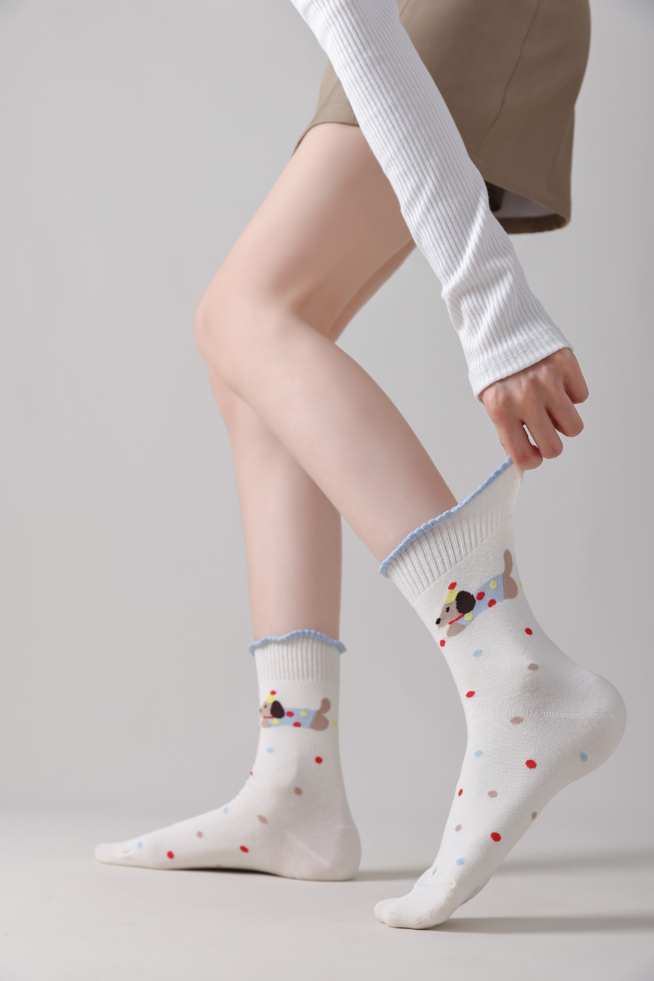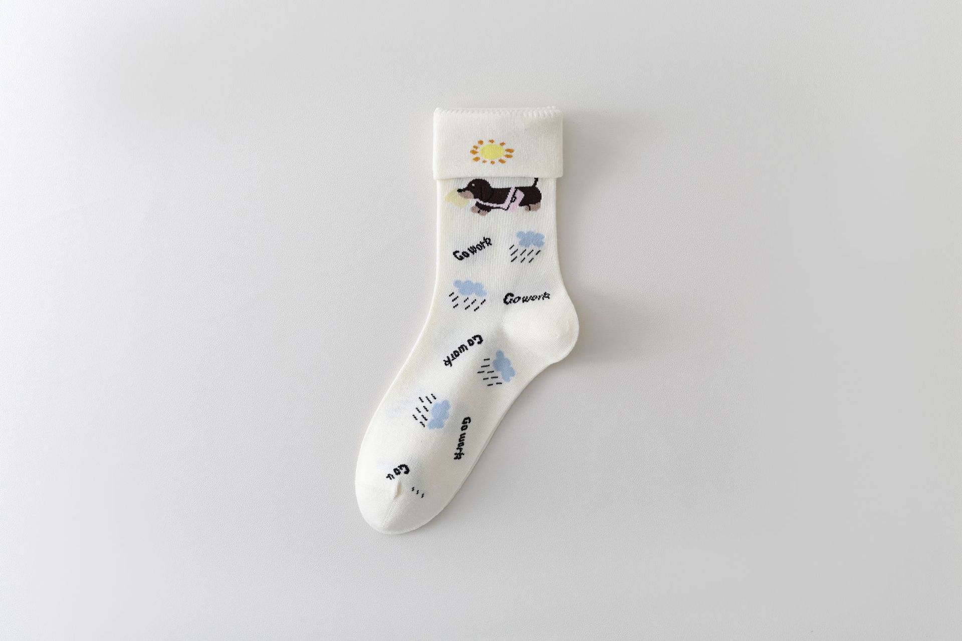 DUDU 눈 봄과 가을 새로운 살라미 강아지의 날 사계절 면 양말 만화 패턴 귀여운 중간 양말스토어 가기