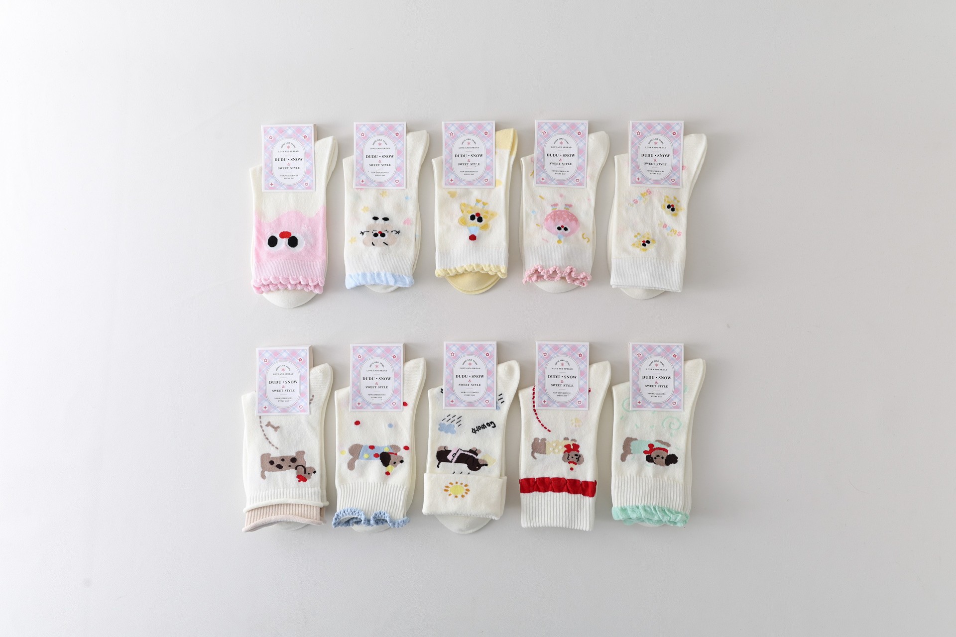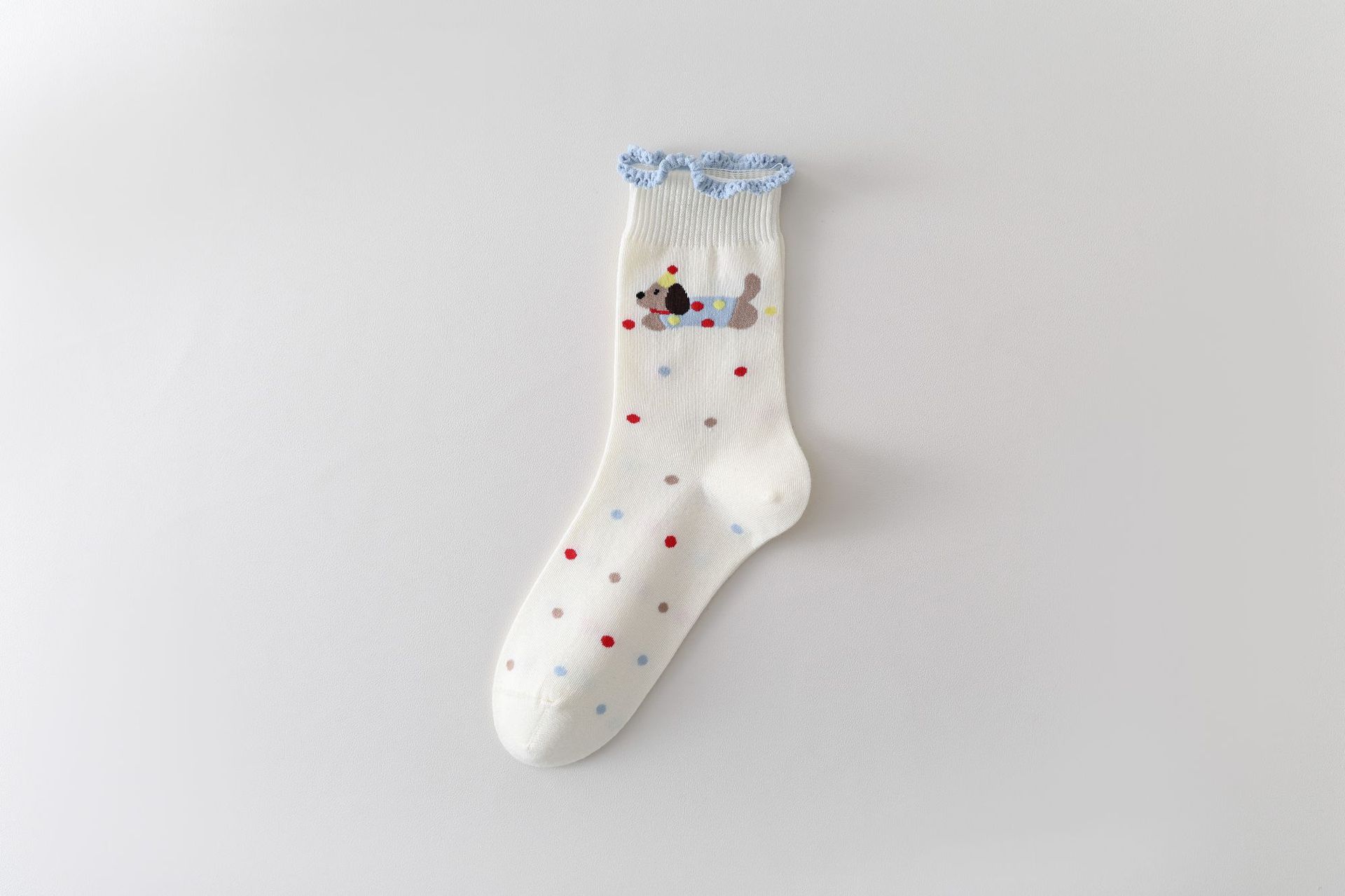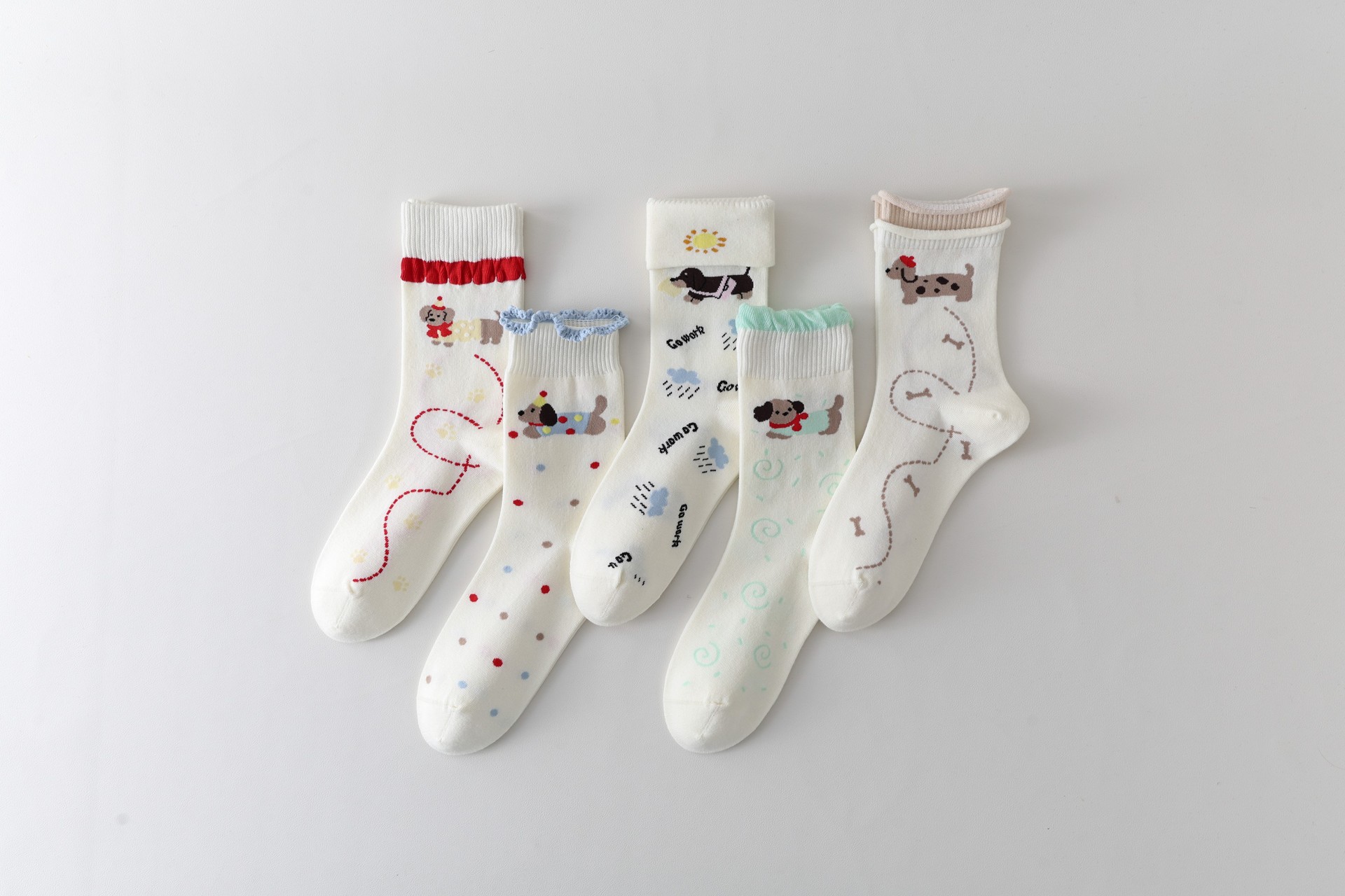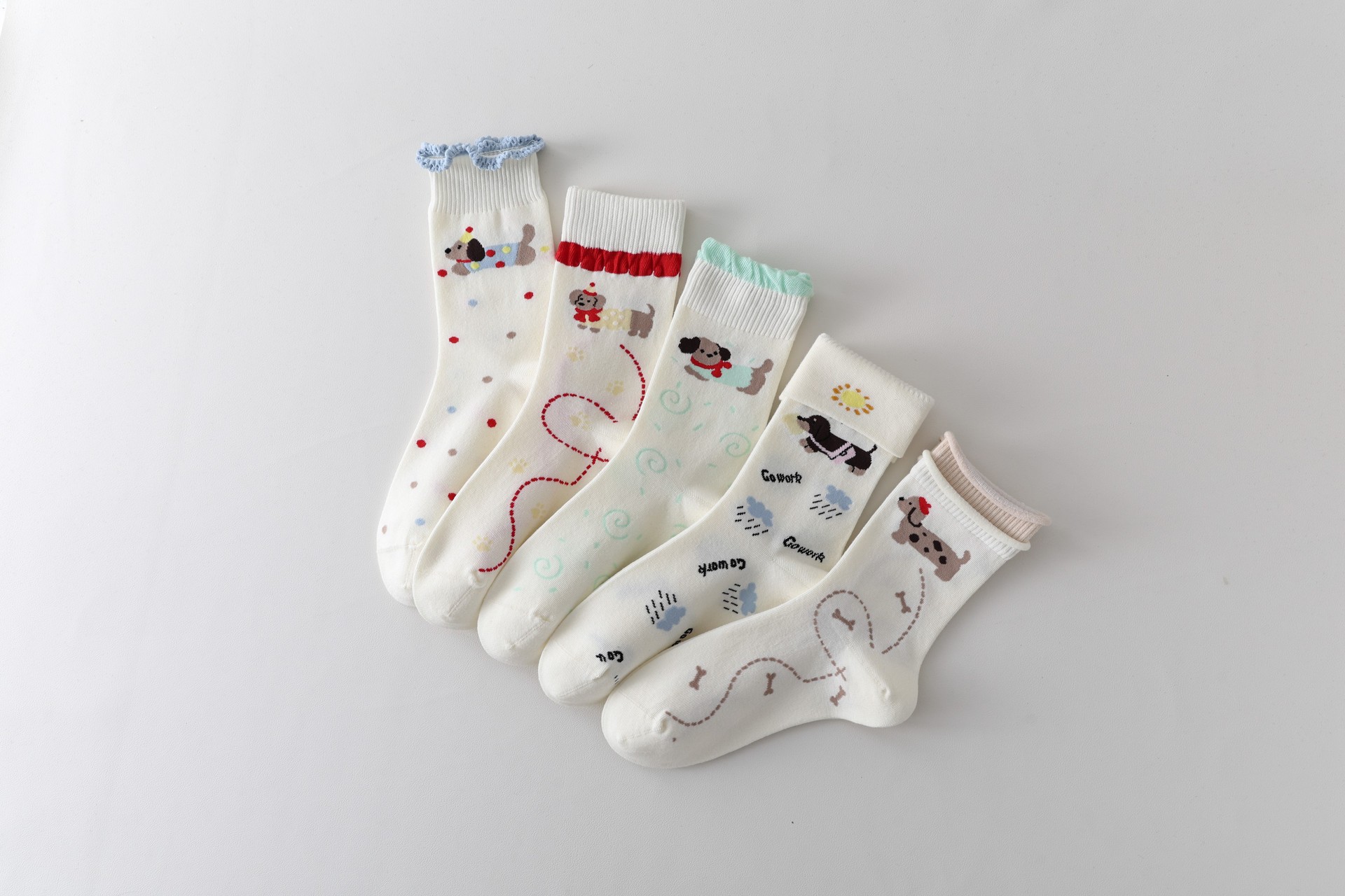 DUDU 눈 봄과 가을 새로운 살라미 강아지의 날 사계절 면 양말 만화 패턴 귀여운 중간 양말스토어 가기