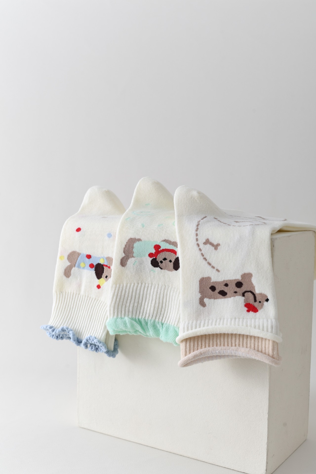DUDU 눈 봄과 가을 새로운 살라미 강아지의 날 사계절 면 양말 만화 패턴 귀여운 중간 양말