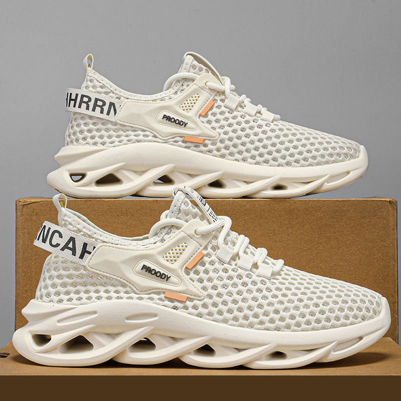 2025 년 여름 새로운 매일 달리기 스포츠 레이스 업 트렌디 남성 신발 대형 메쉬 메쉬 통기성 로우 탑 스포츠 메쉬 신발