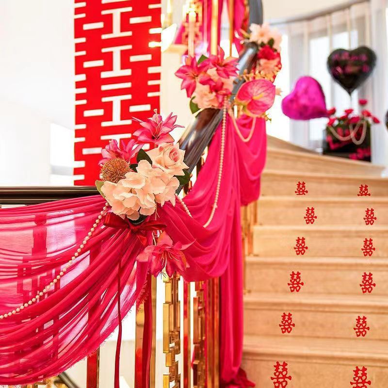 웨딩 아이스 실크 천 웨딩 홀 레이아웃 아이스 실크 천 무대 커튼 거즈 커튼 도매 웨딩 계단 난간 장식