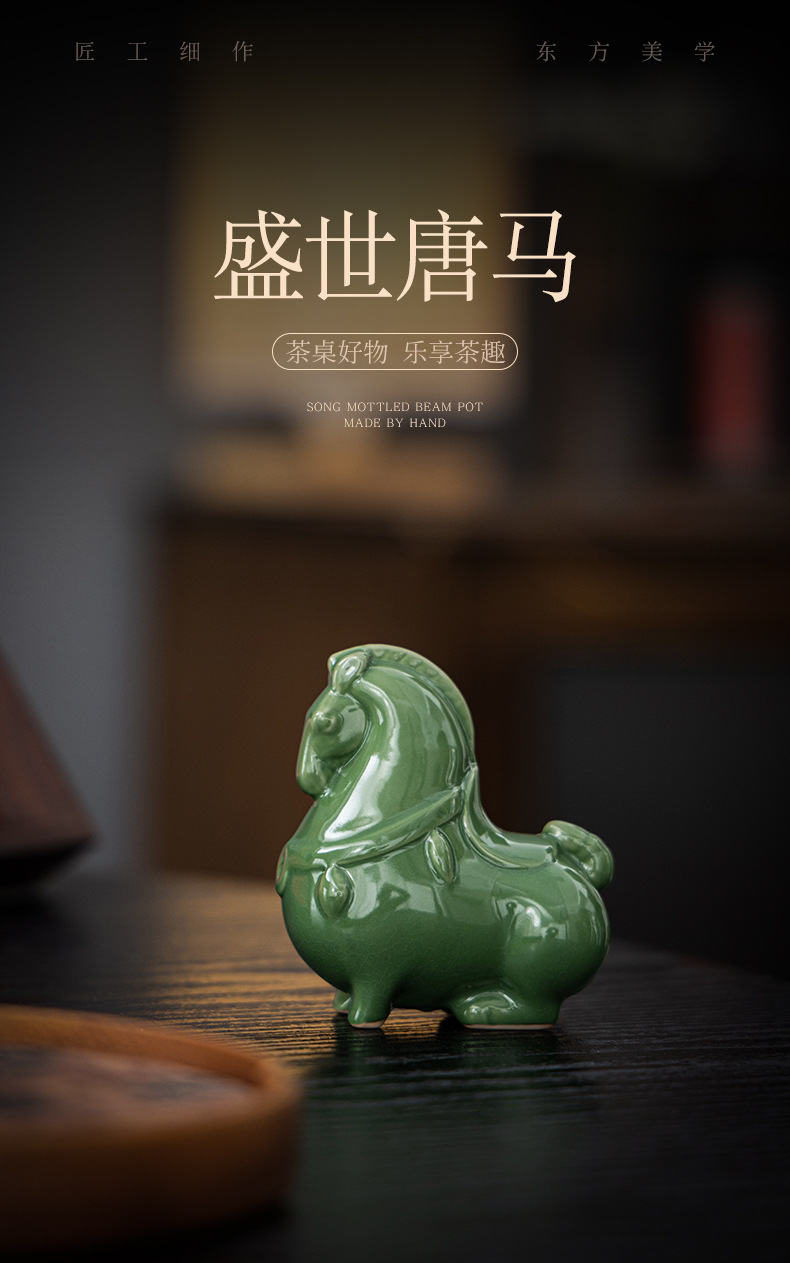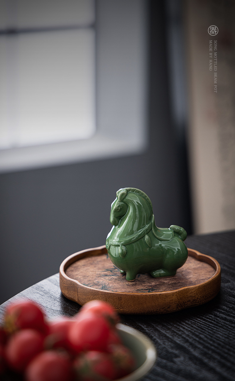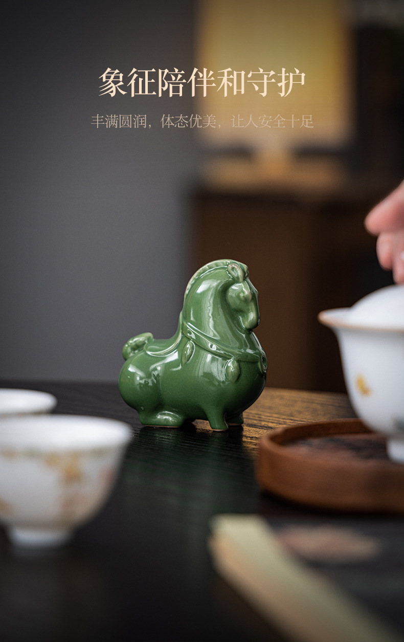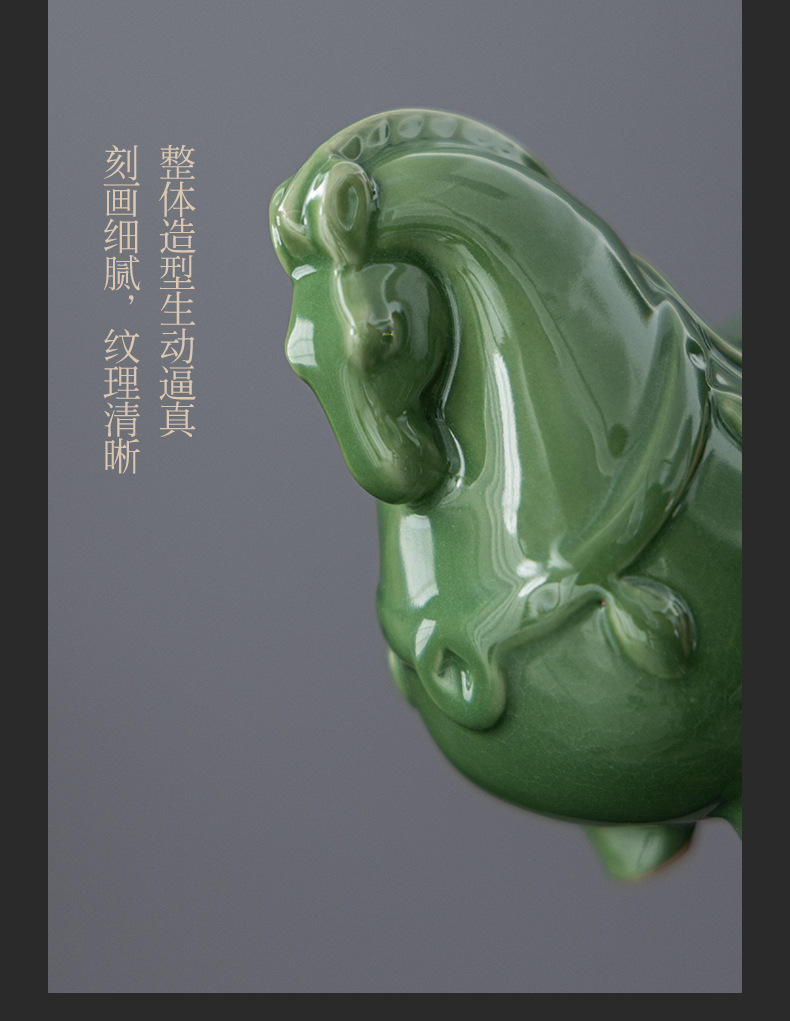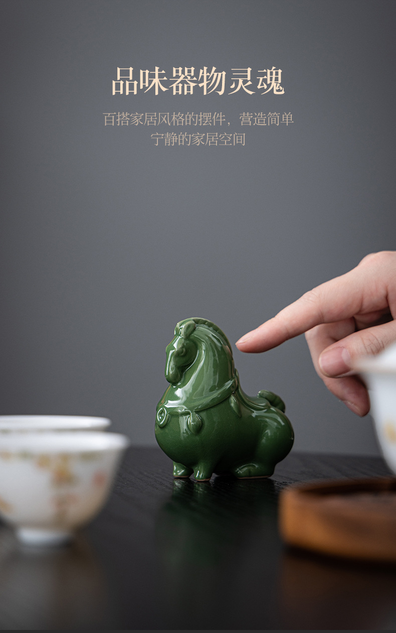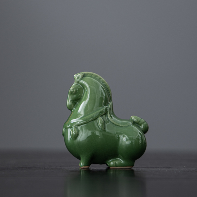 Ruyao 녹색 당나라 말 크리 에이 티브 세라믹 녹색 말 오픈 조각 차 애완 동물 데스크탑 입구 장식 공예 장식품 선물