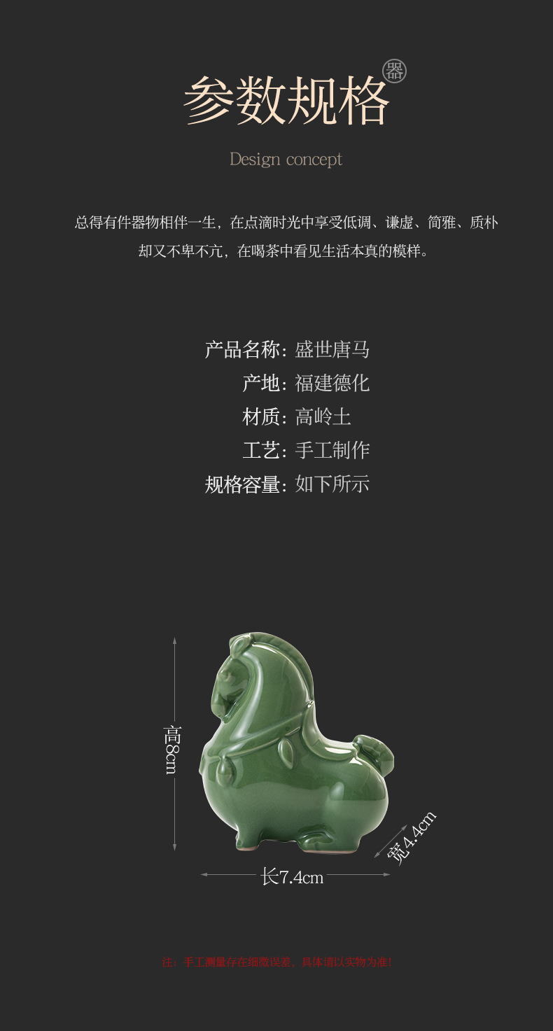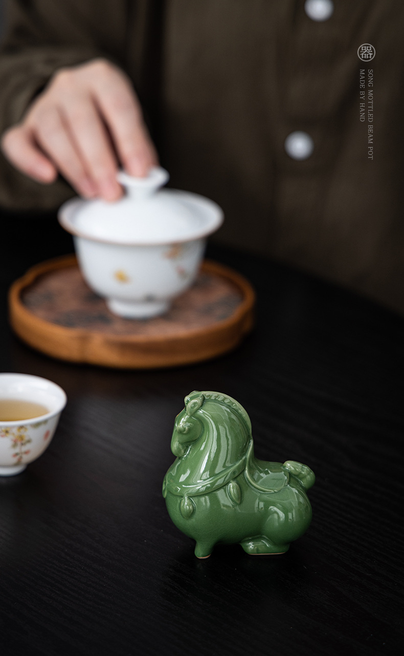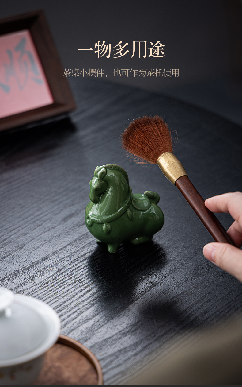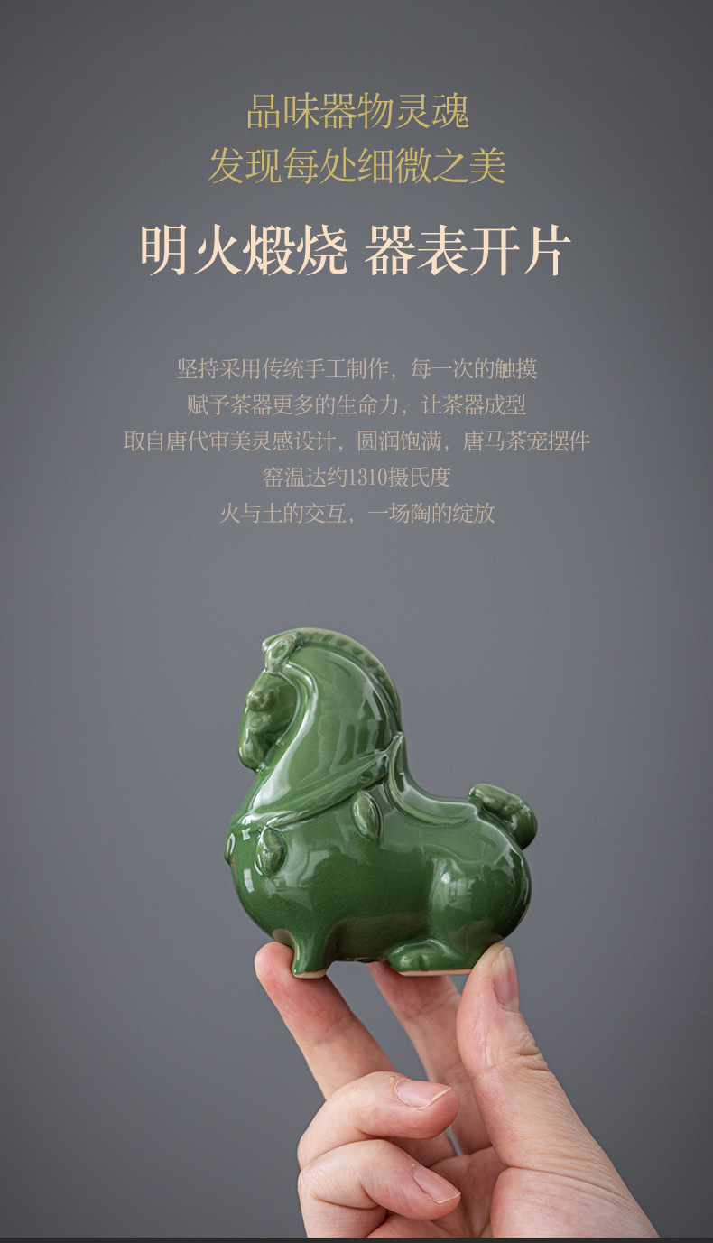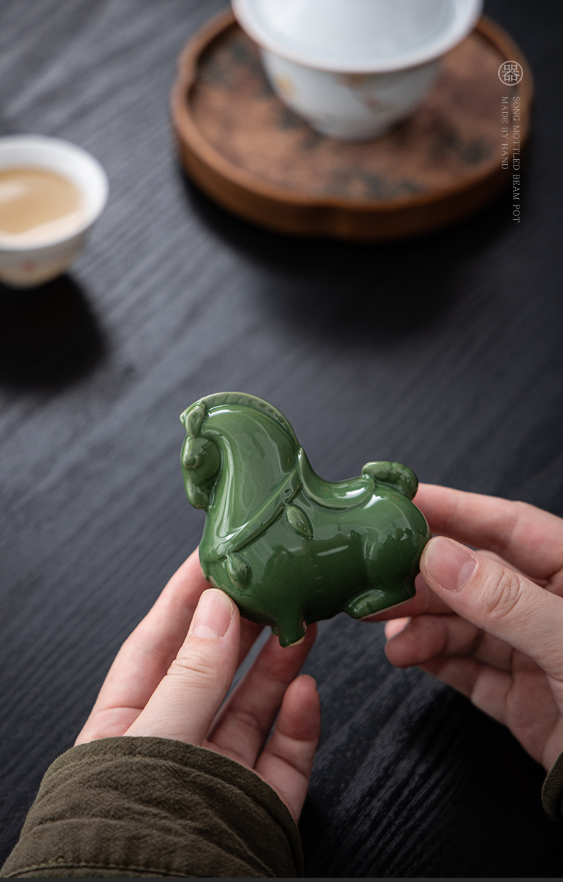 Ruyao 녹색 당나라 말 크리 에이 티브 세라믹 녹색 말 오픈 조각 차 애완 동물 데스크탑 입구 장식 공예 장식품 선물