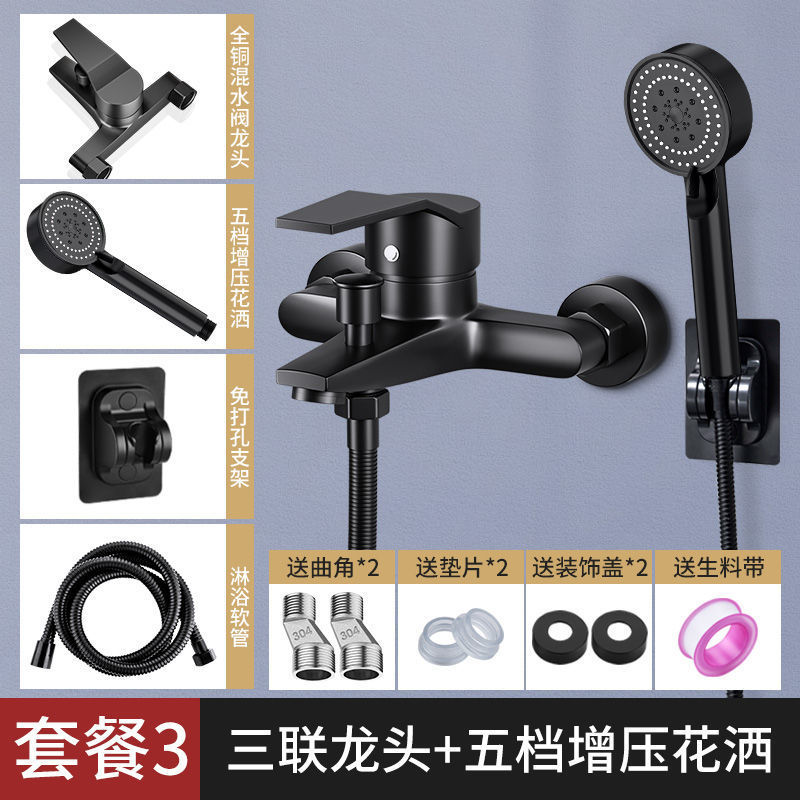 욕실 고급 구리 검정색 냉온수 샤워 수도꼭지 온수기 혼합 밸브 숨겨진 삼중 욕조 수도꼭지 샤워 세트스토어 가기