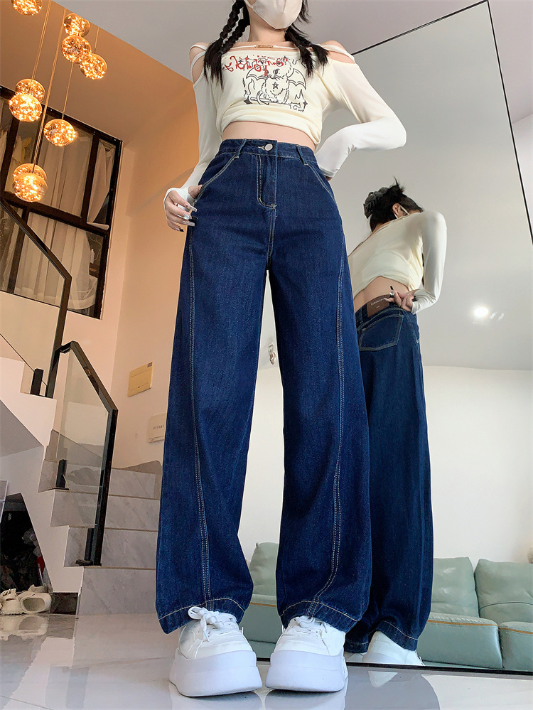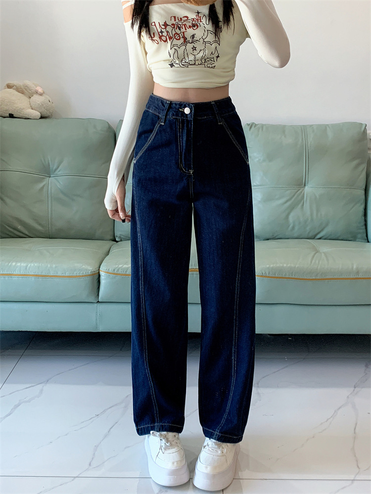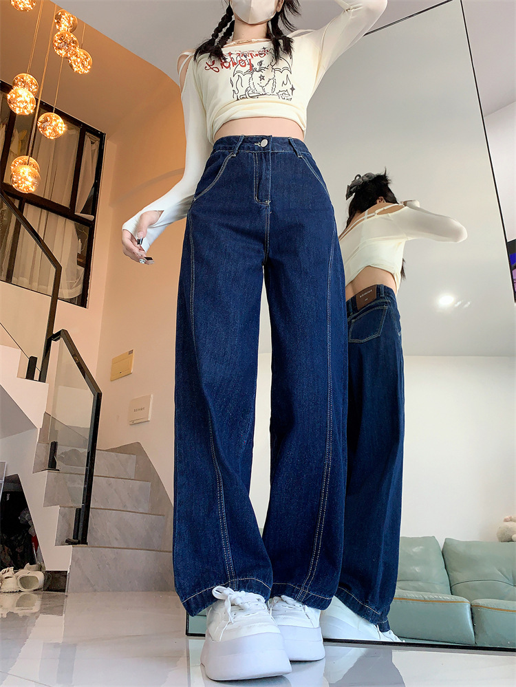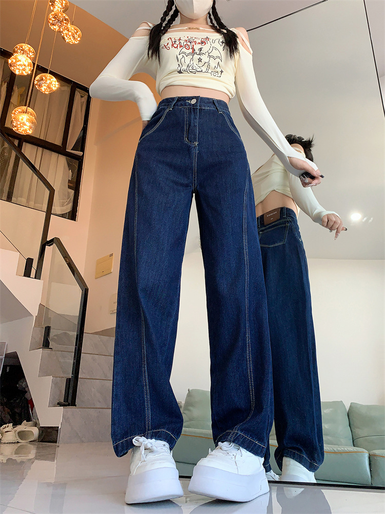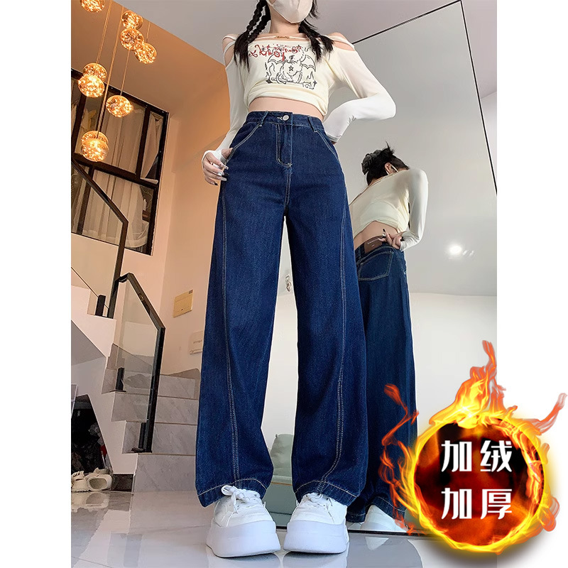 플러스 사이즈 기모 청바지 여성 2024 년 겨울 새 배 모양의 몸 느슨한 높은 허리 슬리밍 넓은 다리 마체테 바지스토어 가기