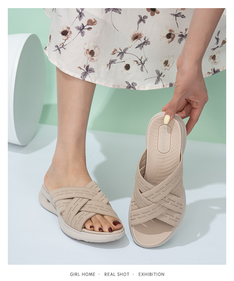 대외 무역 스몰 사이즈 슬리퍼 여성 2025 여름 새로운 두꺼운 바닥 플라이 짠 크로스 레저 초경량 국경 샌들과 슬리퍼 도매