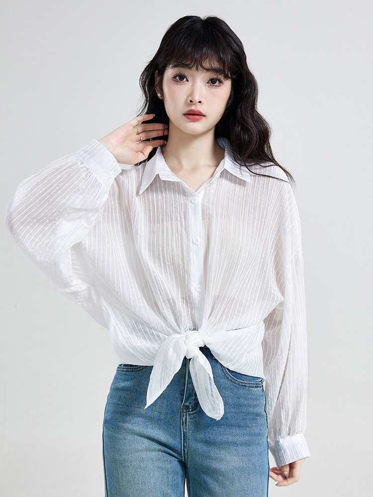 아이스 실크 주름 여러 가지 빛깔의 선스크린 셔츠 여자 긴팔 2025 여름 새로운 슈퍼 페어리 올 매치 에어컨 카디건 얇은 코트스토어 가기