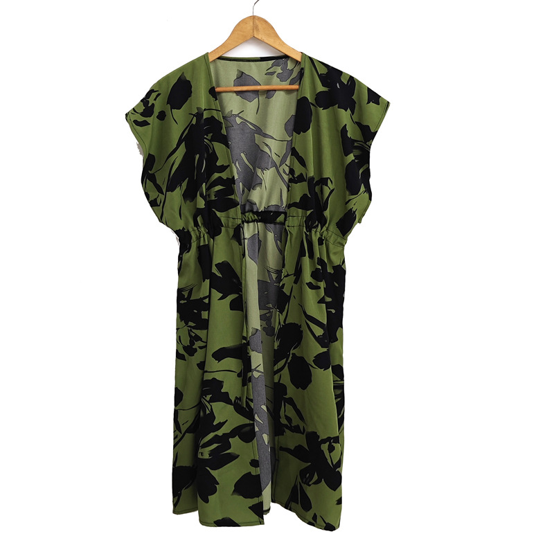 유럽과 미국의 대외 무역 긴 민소매 프린트 벨트 목도리 여성의 여름 해변 선 스크린 비키니 블라우스 카디건스토어 가기