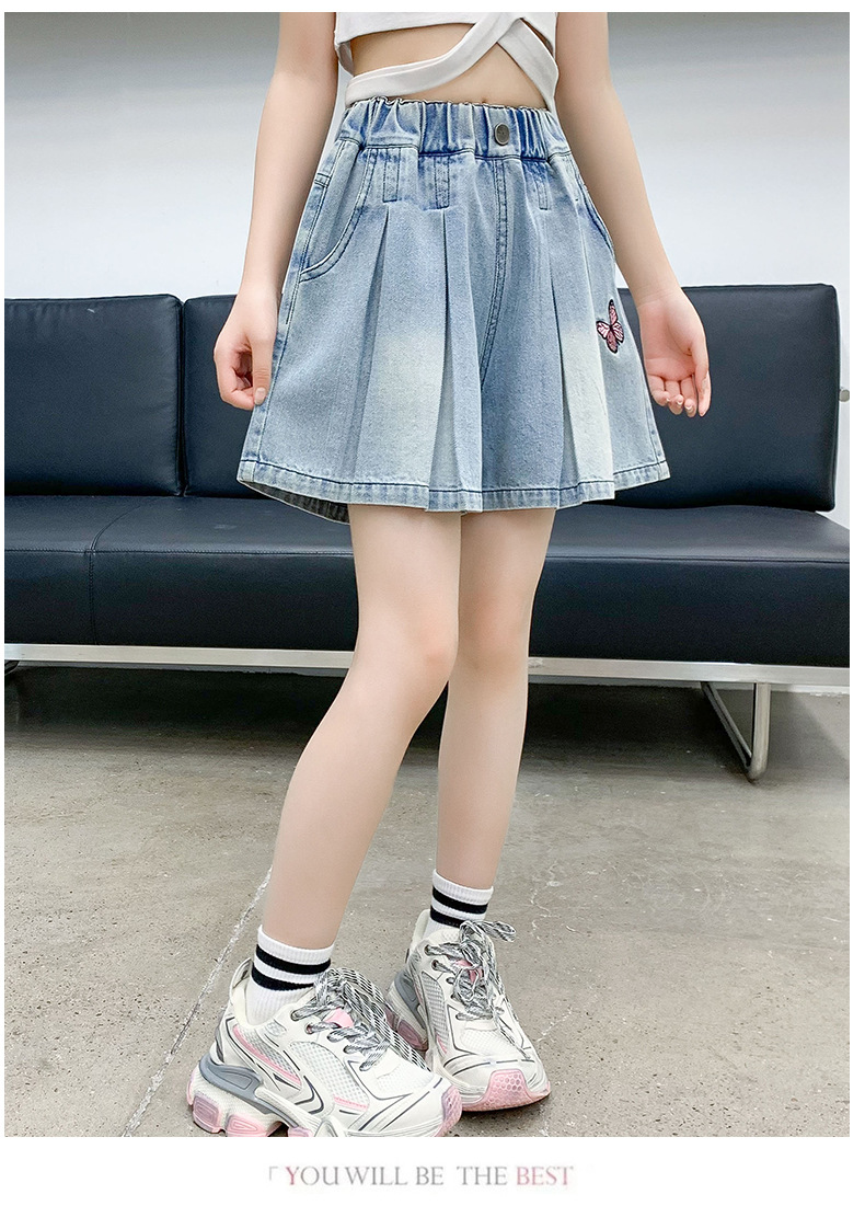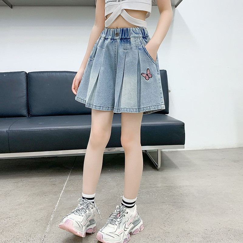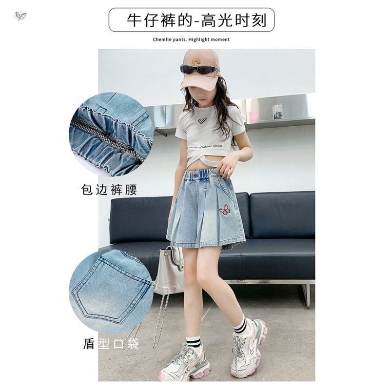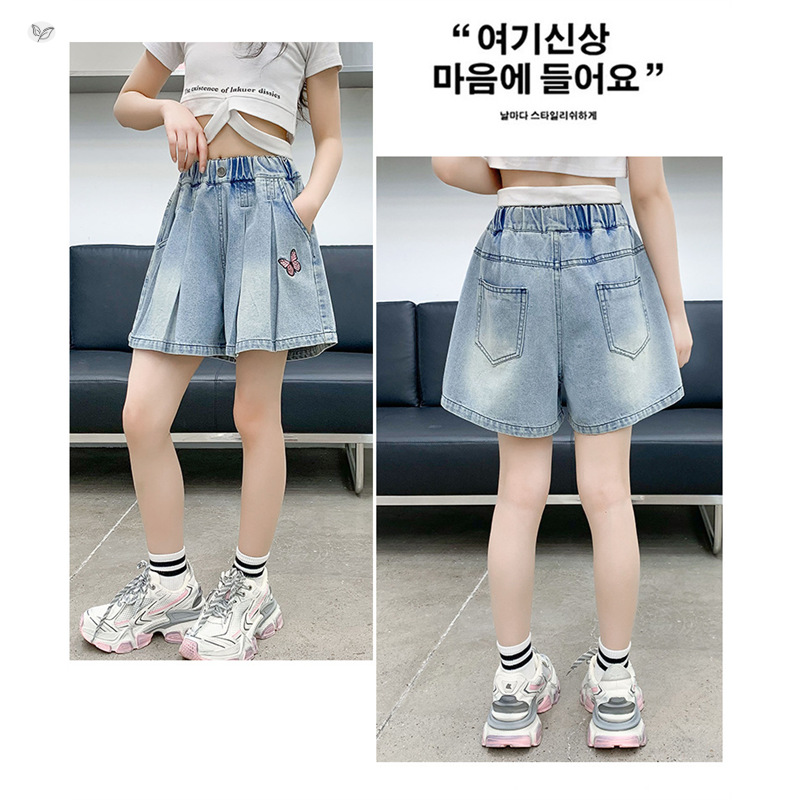 소녀 여름 바지 2025 새로운 나비 데님 반바지 큰 어린이 뜨거운 바지 높은 허리 컬롯 얇은 유행스토어 가기