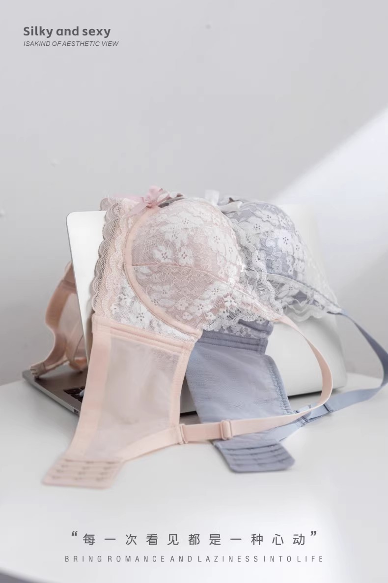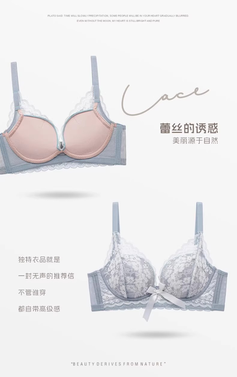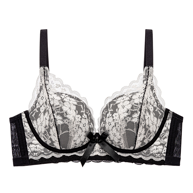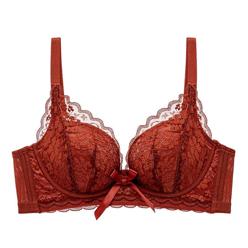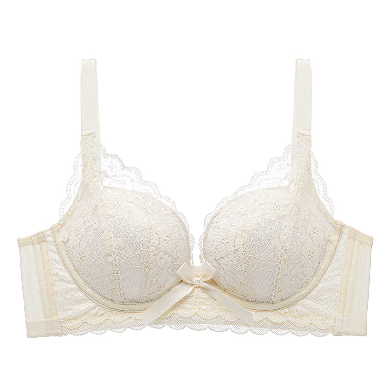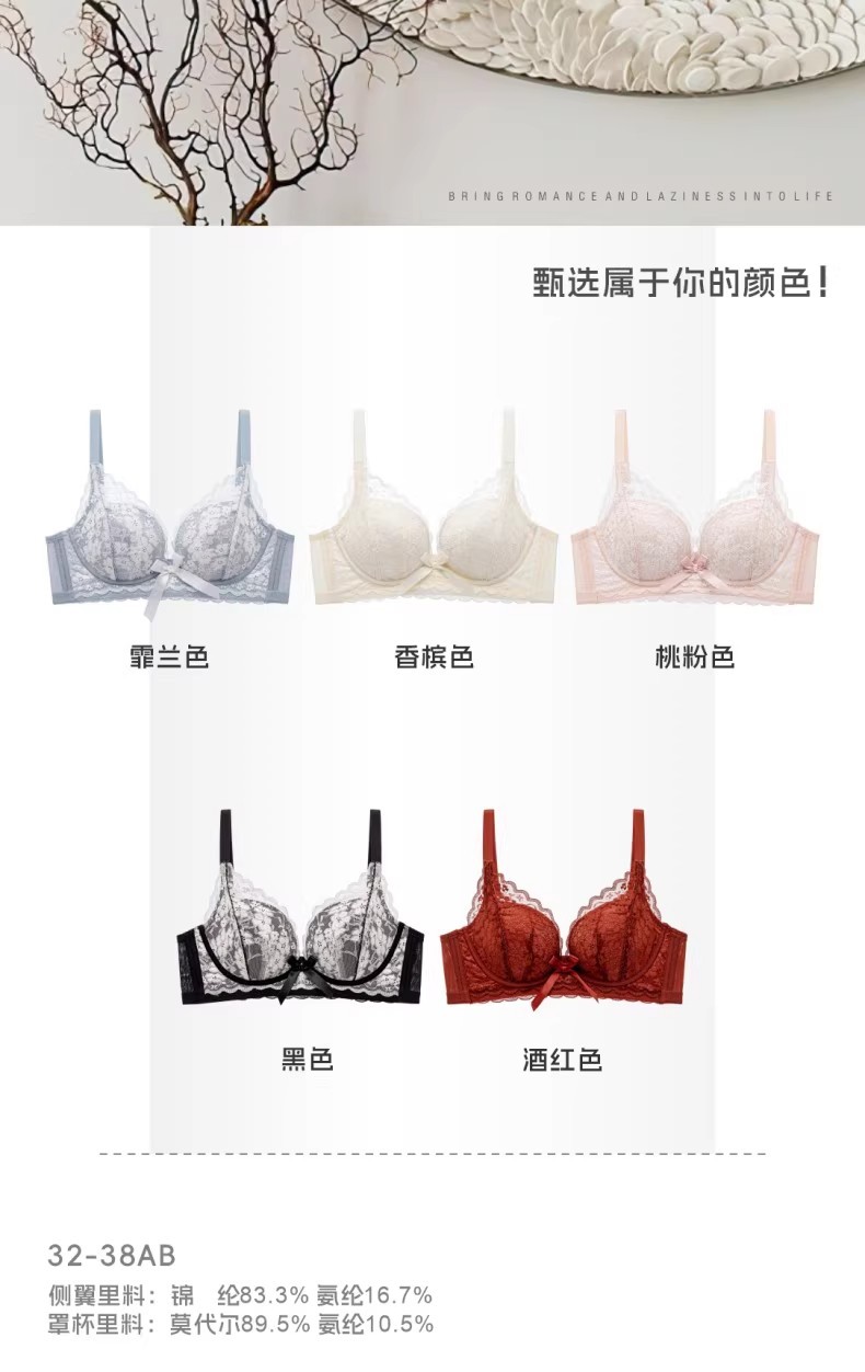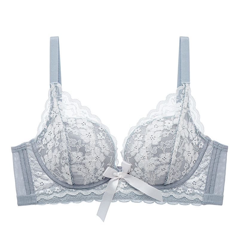 프렌치 레이스 딥 V 여성용 브라, 작은 가슴을 모아 더 크게 보이게 하는 무와이어 브라, 옆가슴을 조절하고 처짐 방지, 여름용 브라, 슬림 효과
