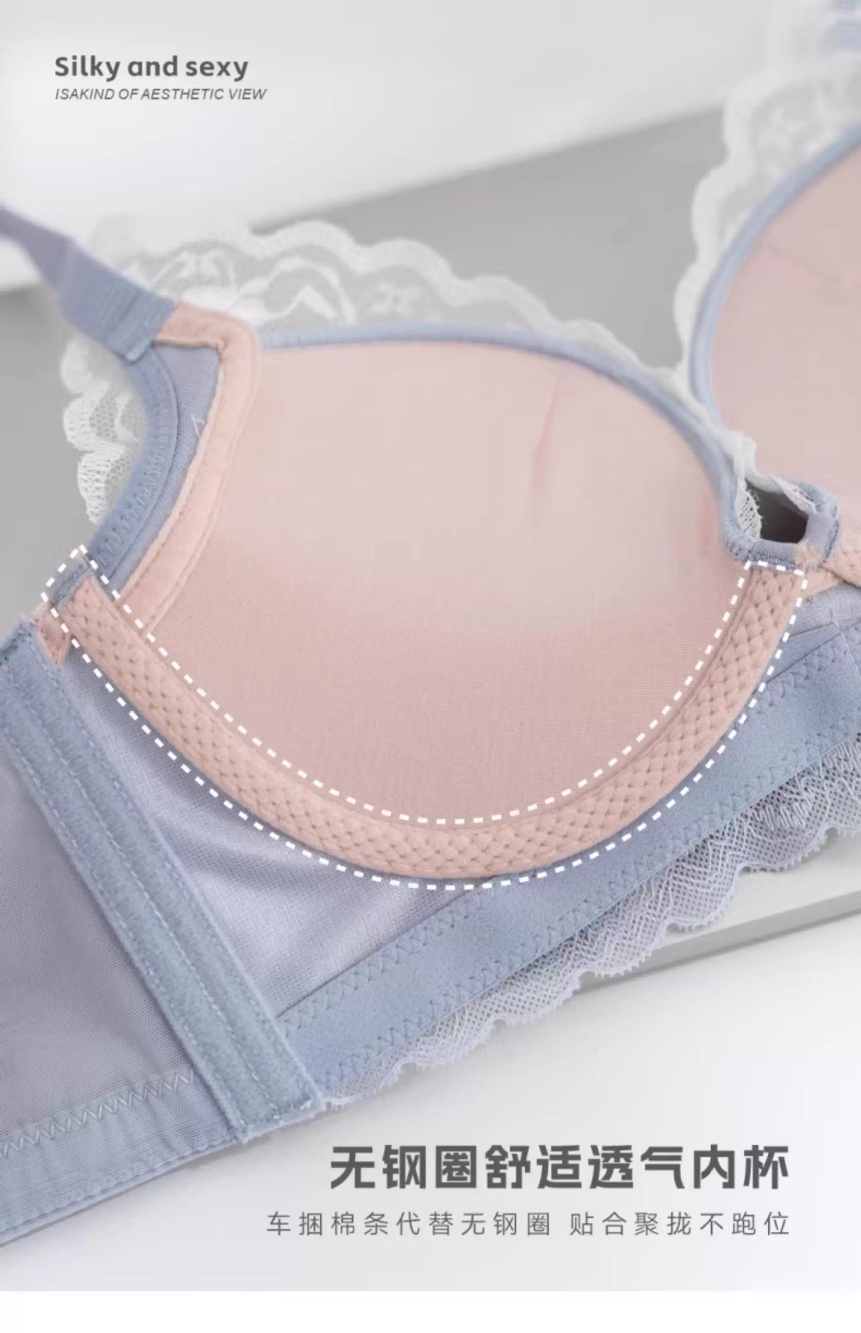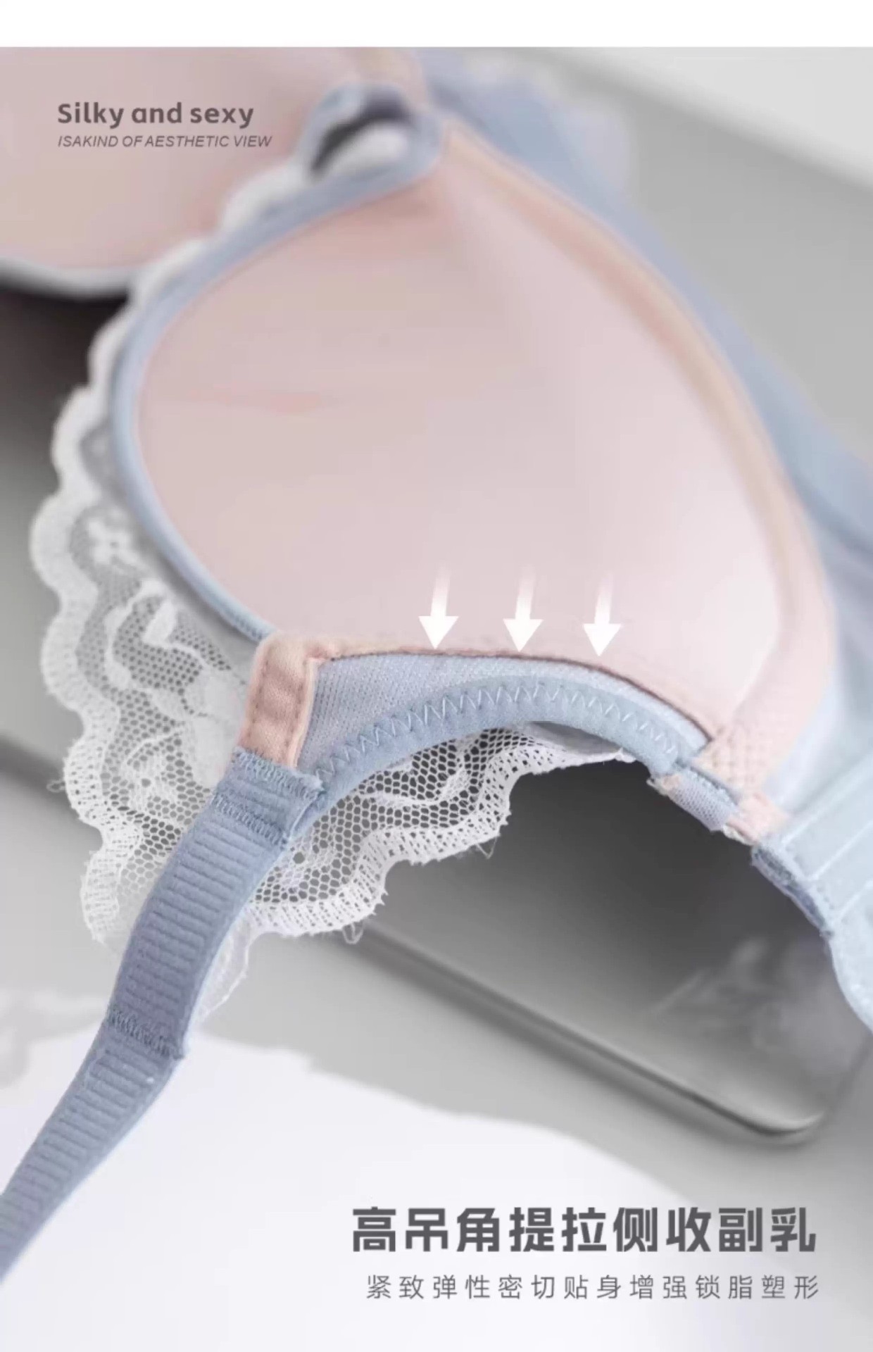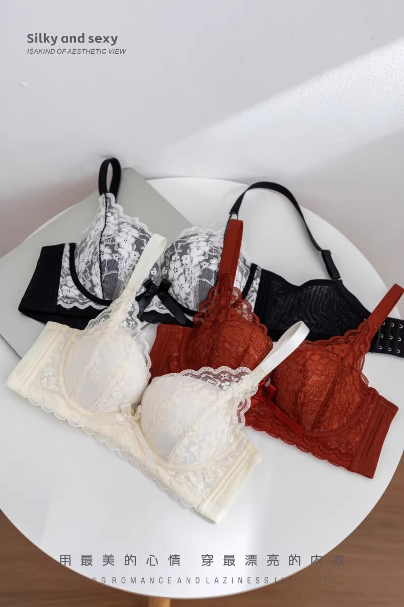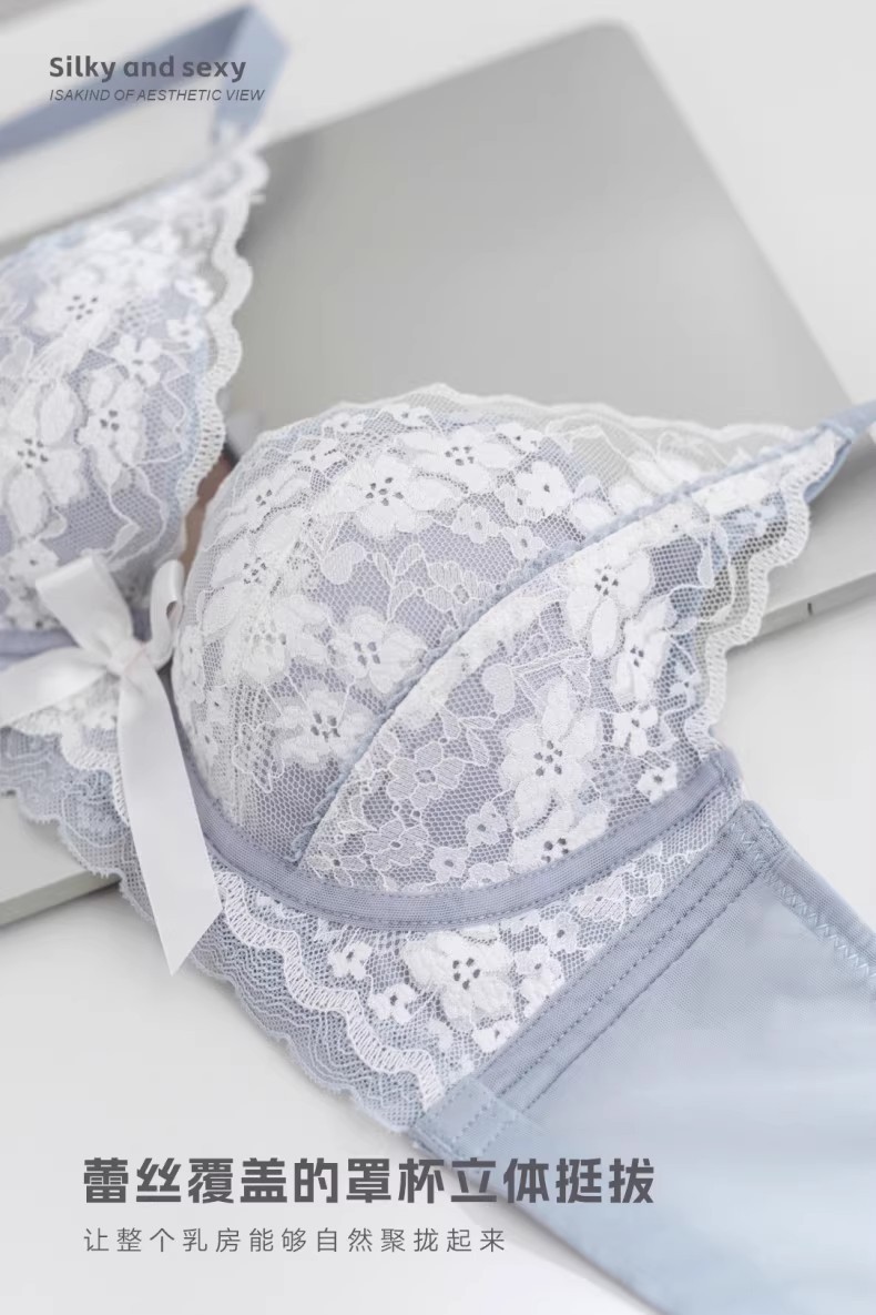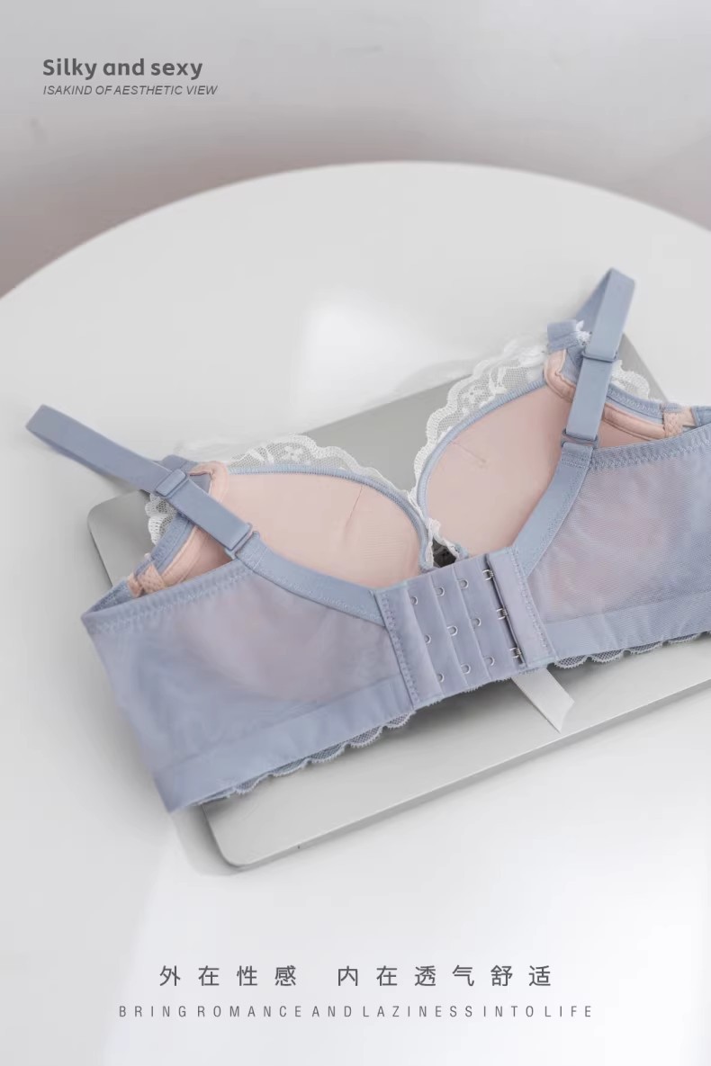 프렌치 레이스 딥 V 여성용 브라, 작은 가슴을 모아 더 크게 보이게 하는 무와이어 브라, 옆가슴을 조절하고 처짐 방지, 여름용 브라, 슬림 효과