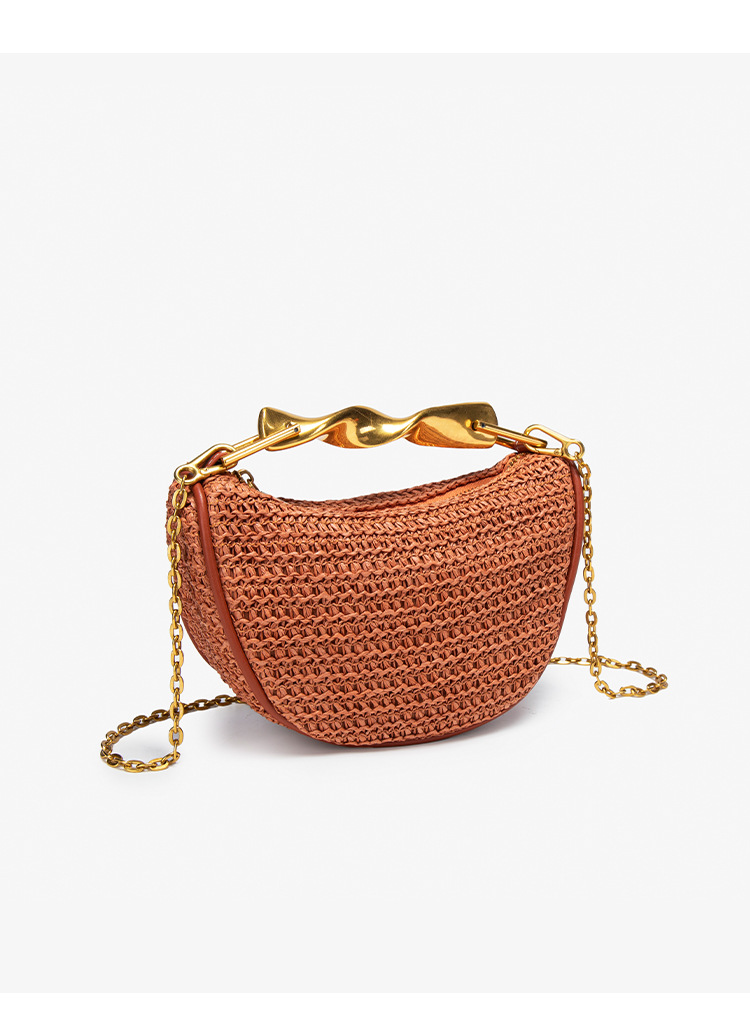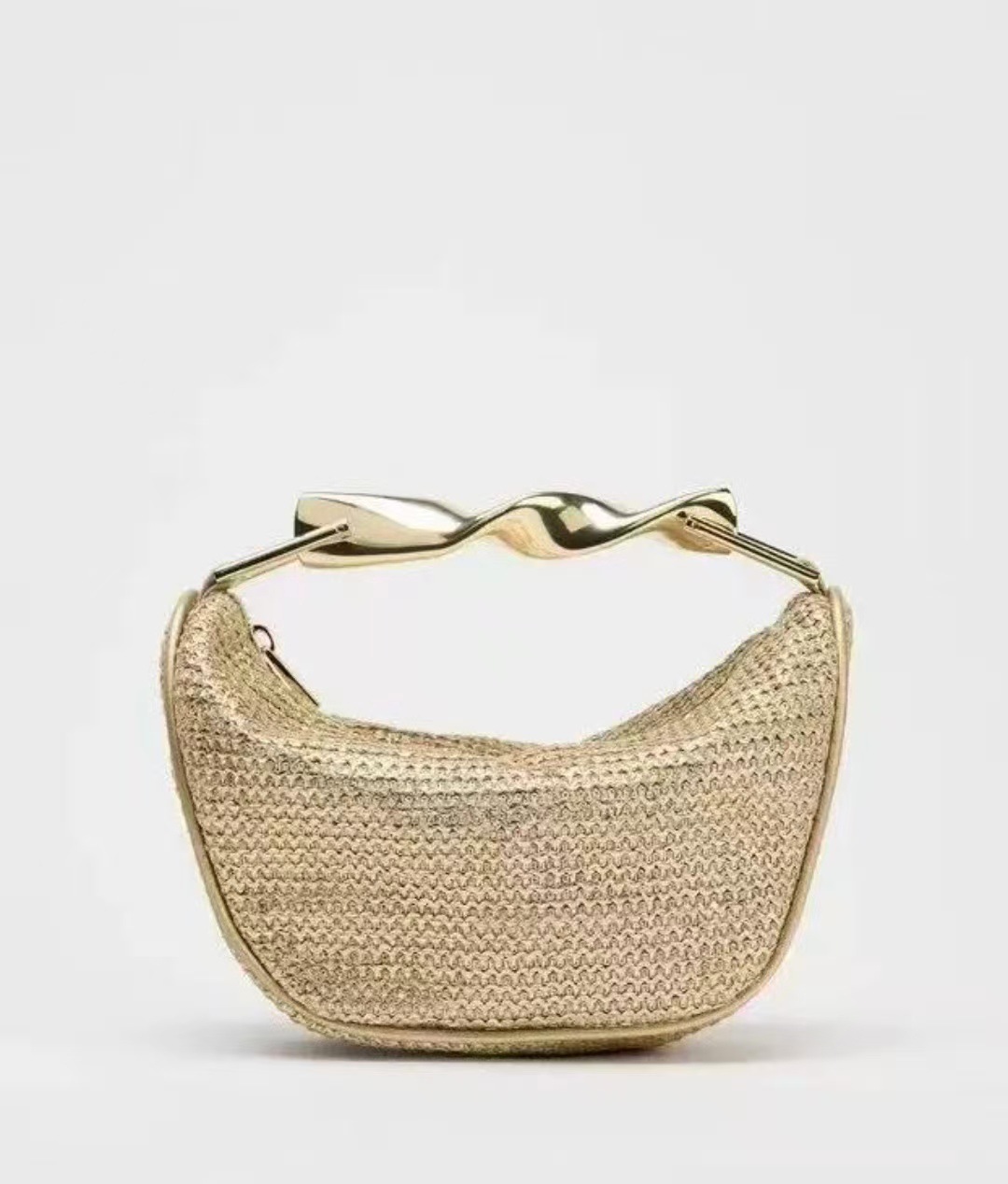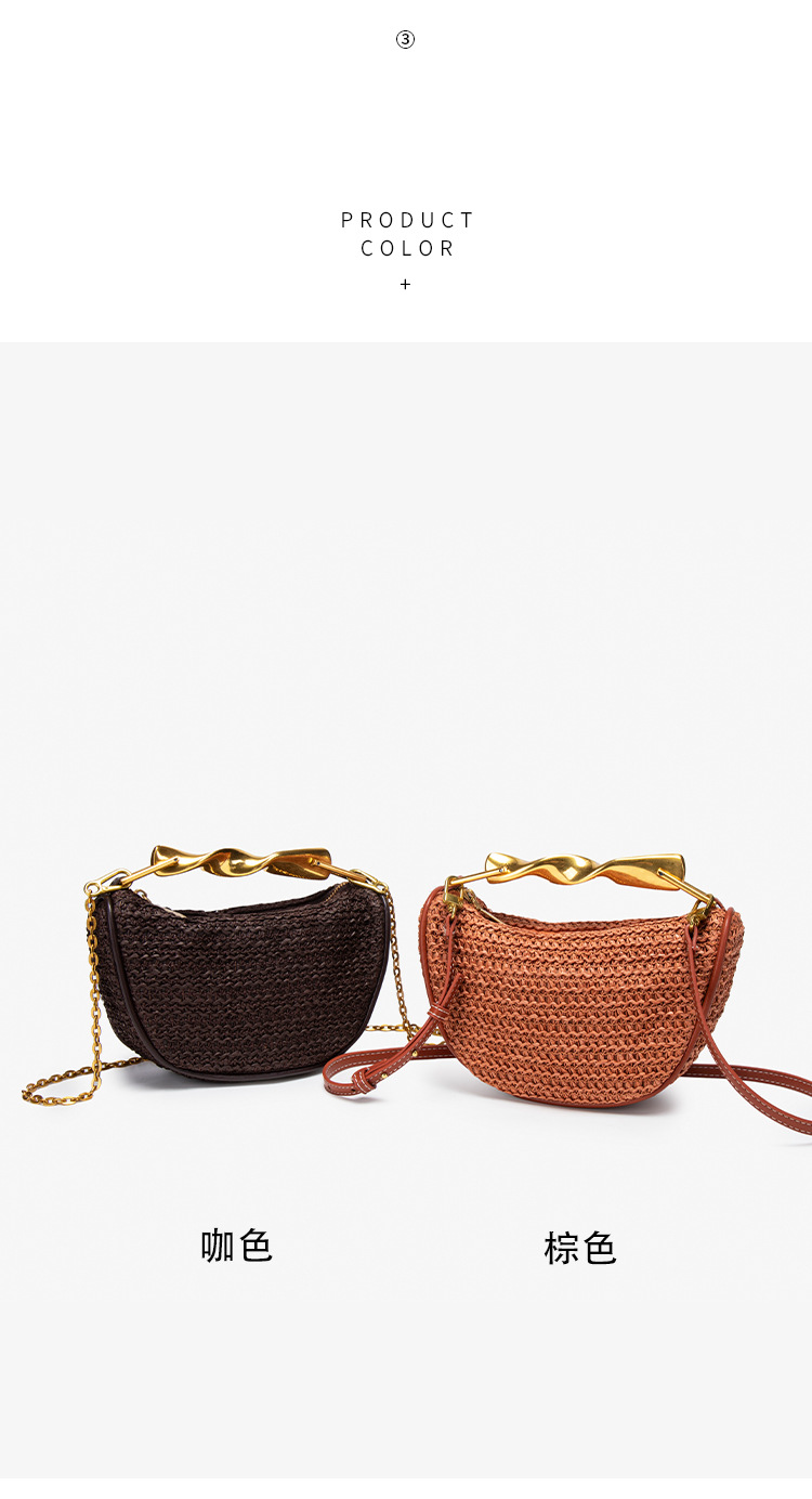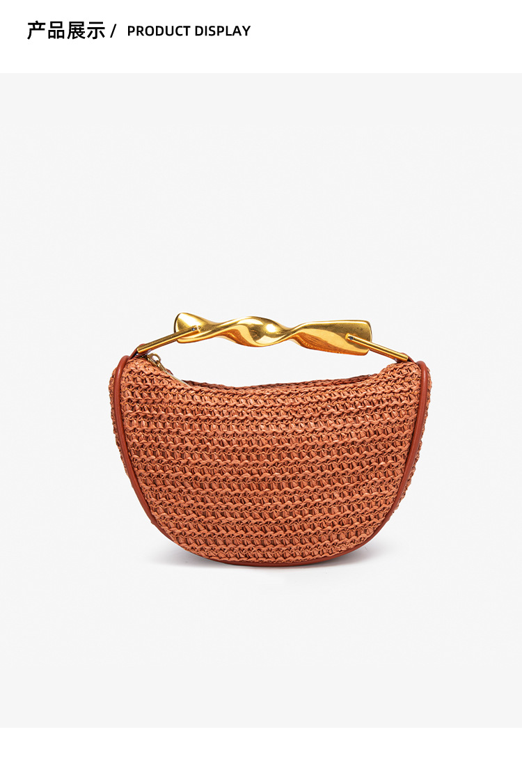 Z가족 크로스보더 밀짚가방 2025 신상 메탈 핸드백 미니백 크로스백 지퍼 캐주얼 패션 위빙백