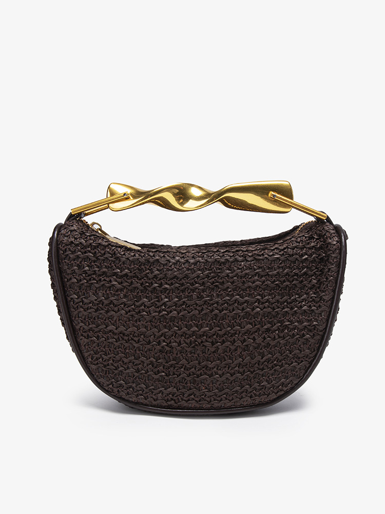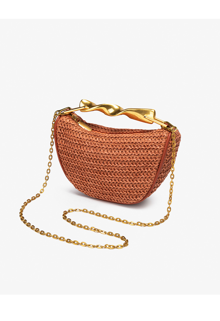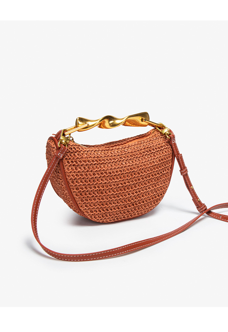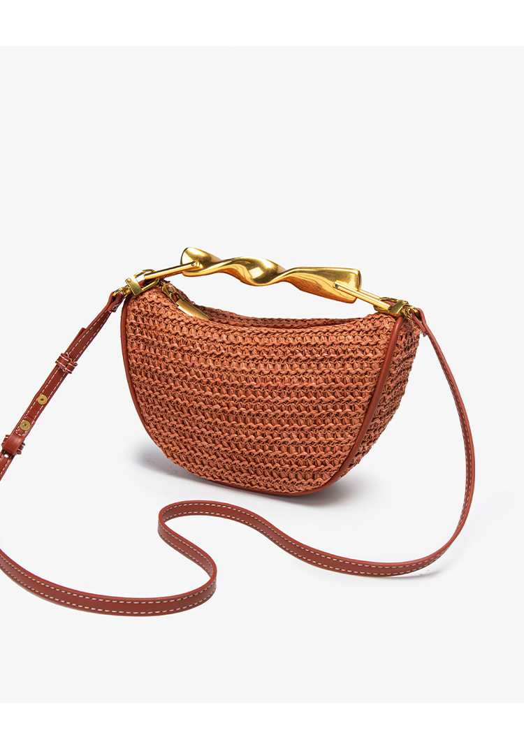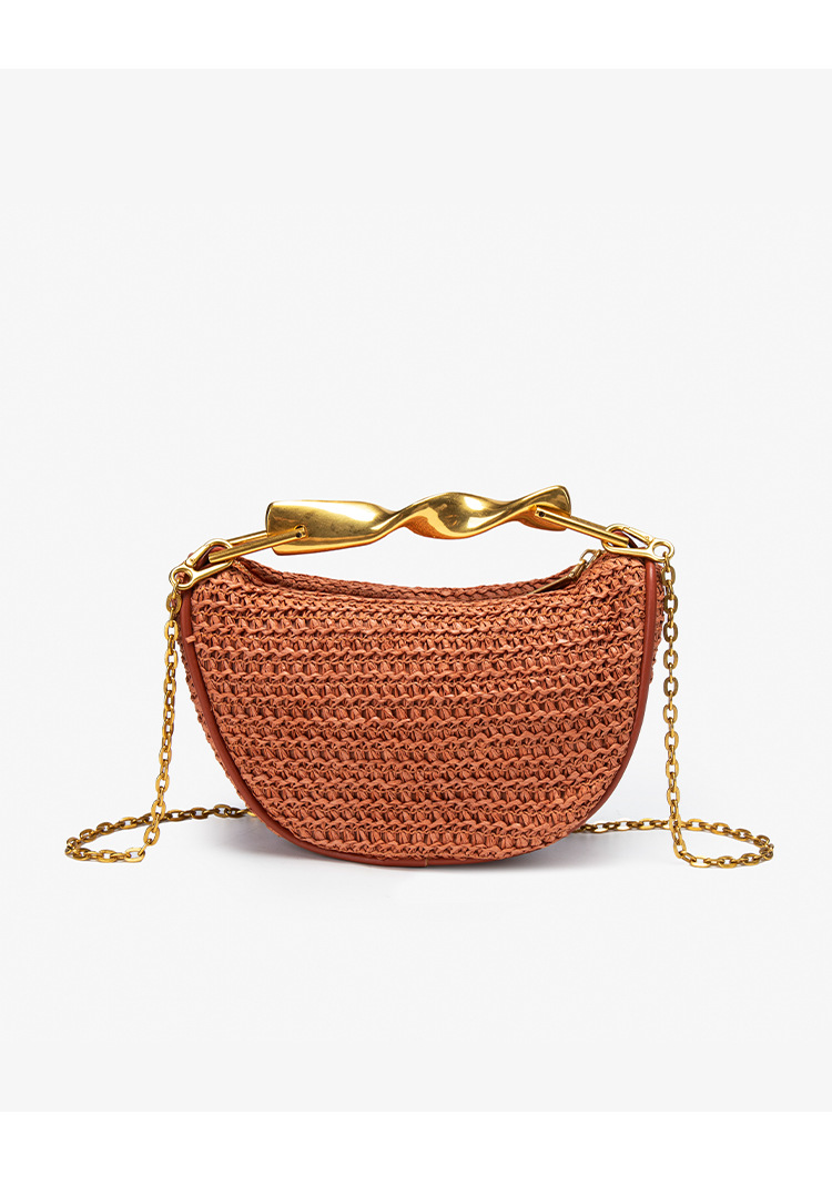 Z가족 크로스보더 밀짚가방 2025 신상 메탈 핸드백 미니백 크로스백 지퍼 캐주얼 패션 위빙백